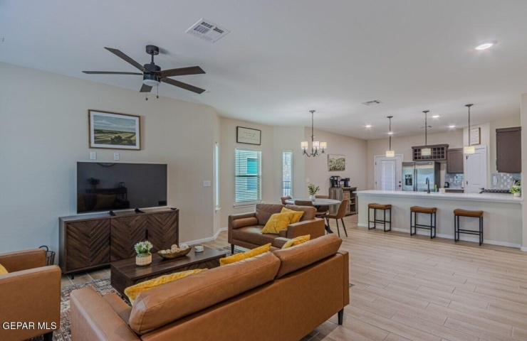 Property Description: Step into this stylish and functional Transitional-style home featuring an open layout and plenty of natural light. The kitchen is a chef's dream with granite countertops, a sleek tiled backsplash, and stainless steel appliances (no fridge). Maple wood cabinetry adds warmth and charm, while the spacious breakfast bar offers extra seating - perfect for casual meals or entertaining. Enjoy easy-to-maintain tile flooring throughout the main living areas and cozy carpet in all four bedrooms. The primary suite features a walk-in closet and private bath, while the three additional bedrooms provide plenty of space for family or guests. The backyard is fully landscaped, offering a relaxing space to unwind or host weekend gatherings, and the home sits just steps away from a nearby park - ideal for morning walks or playtime outdoors. A separate laundry room and convenient access to the double garage add to the home's thoughtful design. Sorry, no pets allowed.