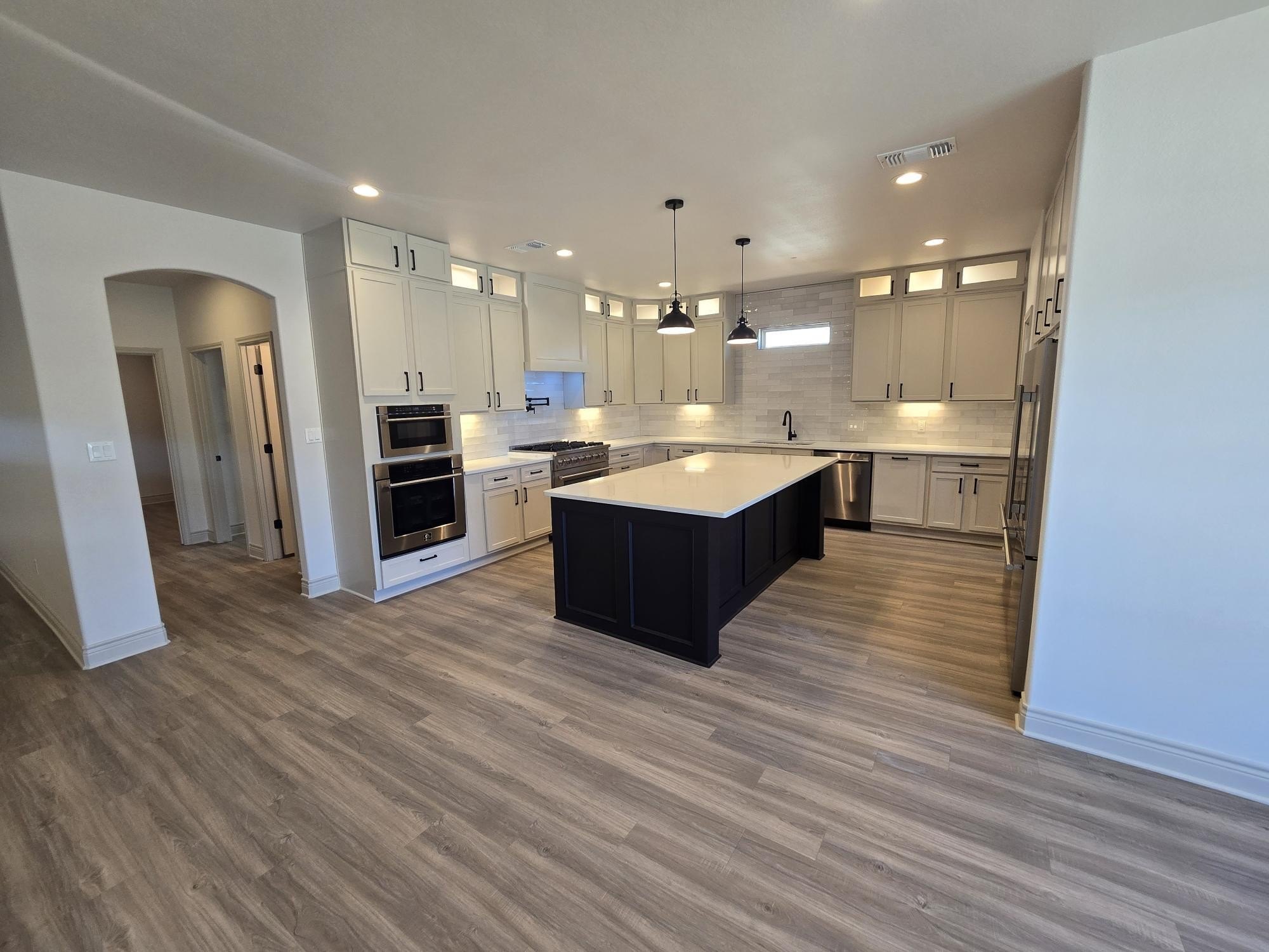 Property Description: New construction located in Escondido Ranch. This home offers 4 bed/3 baths and a 2 car rear entry garage. A very functional design, open concept, large living with fireplace, dining area, large island and lots of cabinets, Forno appliances. Walk-in closets, walk-in pantry, laundry room, spray foam insulation. Isolated master bedroom with cathedral ceiling, master bath has a walk-in shower & separate soaking tub. Large patio with outdoor grilling kitchen.