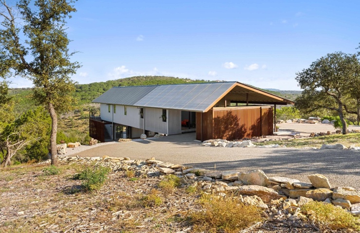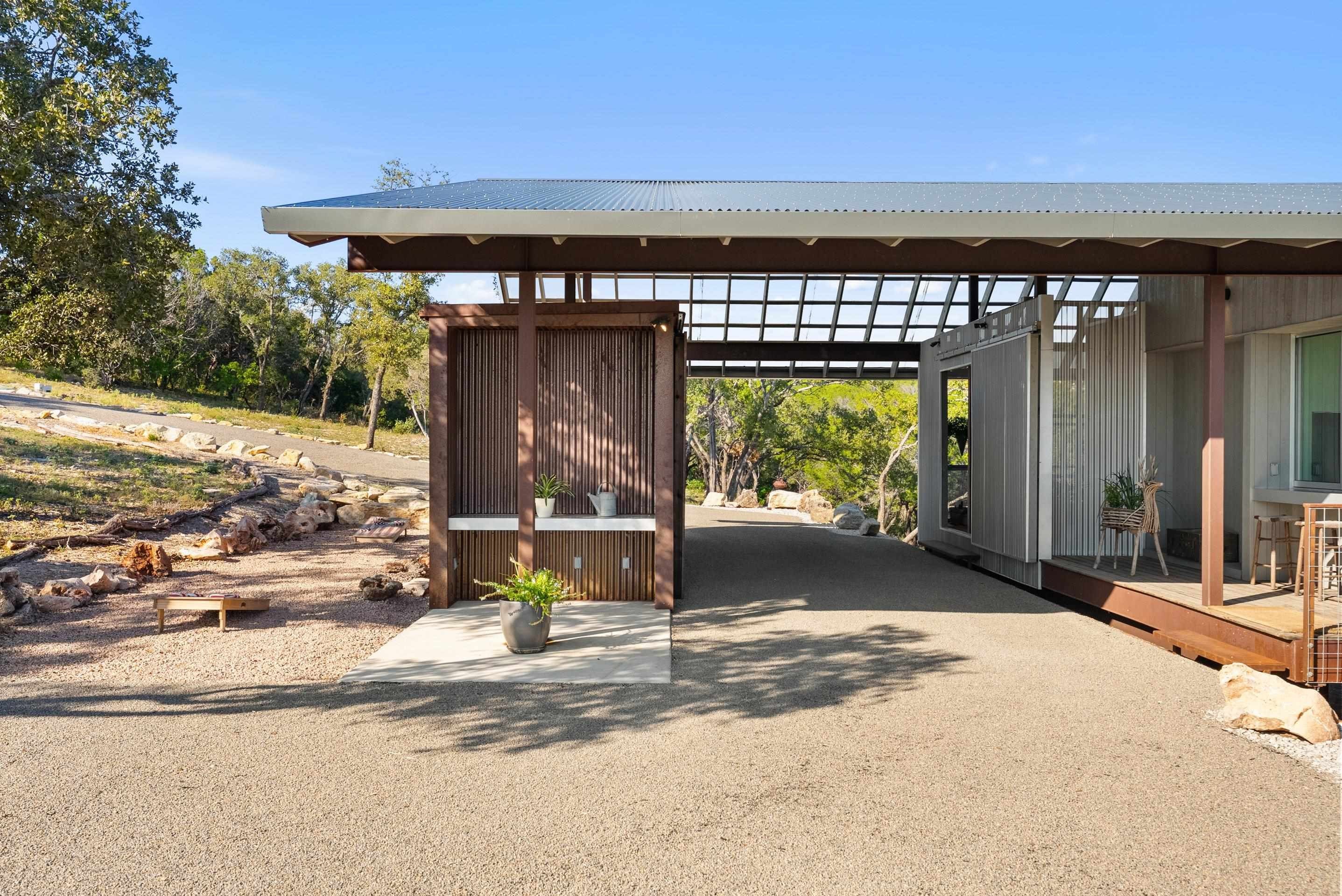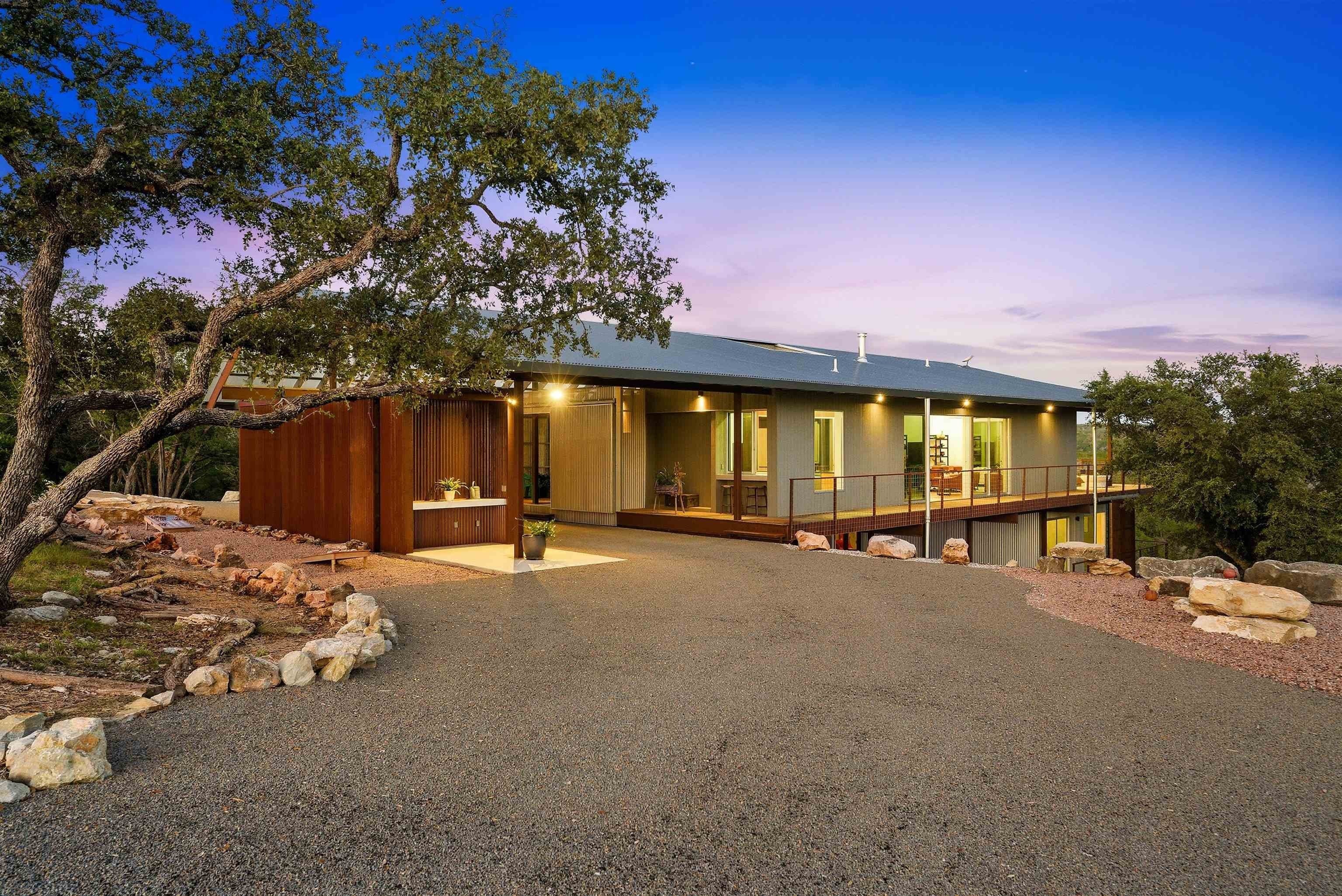 Property Description: Perched above the rolling hills and limestone outcrops of the gated Wolf Creek Ranch community, this architecturally stunning home by LOWDO captures breathtaking vistas of valleys, trees, and sunlit ridgelines near Lake Buchanan. Designed to harmonize with its surroundings, the home rests on a steel pier-and-beam foundation, minimizing land impact while maximizing views, light, and airflow. The private drive leads through 23.07 acres of scenic terrain where free-ranging cattle help maintain the Agricultural Exemption. A 29,000+ -gallon rainwater collection system with full filtration captures approximately 2,510 gallons per inch of rainfall, and the home is solar-array ready with a south-to-north orientation. Entry through an exterior “potting room” foyer transitions beautifully from outdoors to in, leading to an open-air courtyard that fills the interior with natural light and Hill Country breezes. The kitchen features Reform Cabinets from Denmark, engineered wood flooring, and a slider window to a bar and carport area—perfect for entertaining. Sliders on nearly every wall open to wrap around porches that are 1750 sqft, blending indoor and outdoor living. Built with foam insulation, 2x6 framing, red iron beams, and steel siding, this home is both durable and elegant. The bottom floor has a separate entrance than the top floor. Enjoy sunsets, misty mornings, and access to the Lake Buchanan HOA dock, Morgan Creek easement, and nearby East Lake Buchanan Boat Ramp.