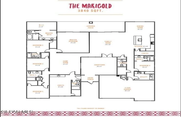 Property Description: The Marigold: An enormous 6-bedroom, 4.5-bathroom single-story home with 3840 sq ft of thoughtful design and luxury. The kitchen features granite countertops, pot filler, apron farmhouse sink, and upgraded lighting-flowing directly into the open living and dining spaces. The primary suite offers a full bath and ample closet space, while one secondary junior suite includes its own private bathroom. Listing subject to errors, omissions, and changes without notice. Info provided is deemed reliable but not guaranteed. MLS photos are for marketing purposes only and may not reflect actual colors or upgrades. Please verify selections during design appointment.