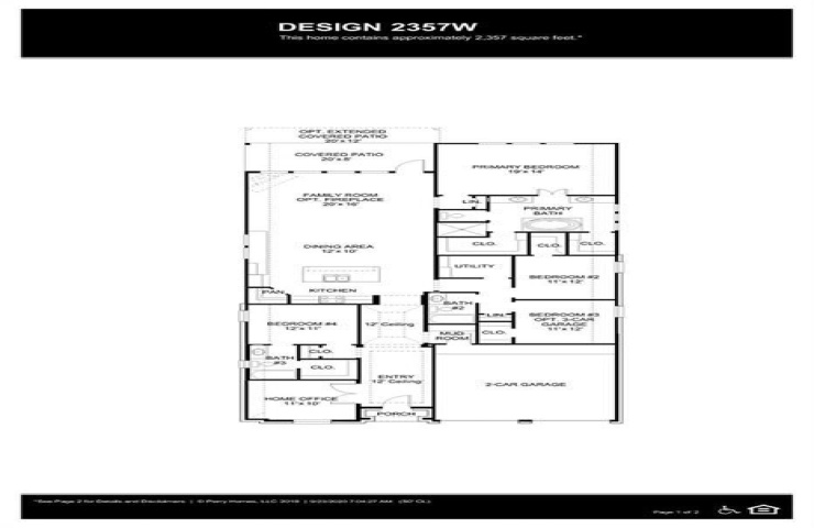Property Description: Extended entry highlights 12-foot coffered ceiling. Hardwood floors throughout living areas. Home office with French doors set at entry. Dining area flows into open family room with a wood mantel fireplace and wall of windows. Open kitchen offers extra counter space, a double wall oven, 5-burner gas cooktop, corner walk-in pantry and generous island with built-in seating space. Spacious primary suite. Double doors lead to primary bath with dual vanities, garden tub, separate glass-enclosed shower and two walk-in closets. Private guest suite with full bathroom and walk-in closet. All bedrooms include walk-in closets. Covered backyard patio. Mud room off two-car garage.