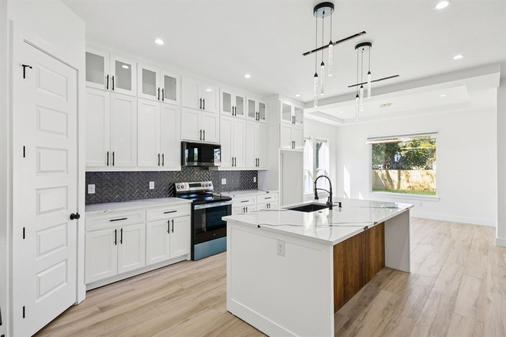 Property Description: Stunning new construction within 15mins of Downtown Dallas! This gorgeous modern features a spacious open-concept main level with sleek kitchen, living, & dining spaces that combine to create an entertainer's dream loaded with designer touches! Main level also features 4th bed or office space with full bath. Gorgeous kitchen featuring quartz counters, island with seating, and stainless appliances. Custom fixtures & LED lighting throughout. Head up the handcrafted oak tread staircase to find the spacious primary suite with balcony, 2 large bedrooms, and 1 additional full bath.
