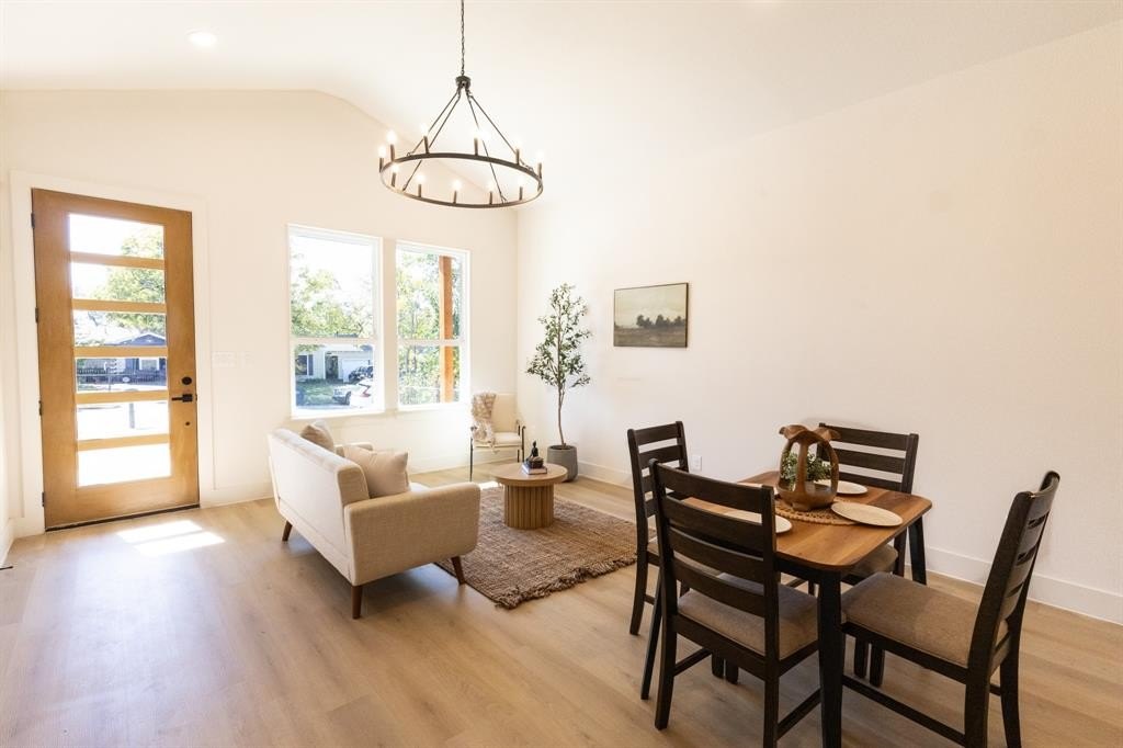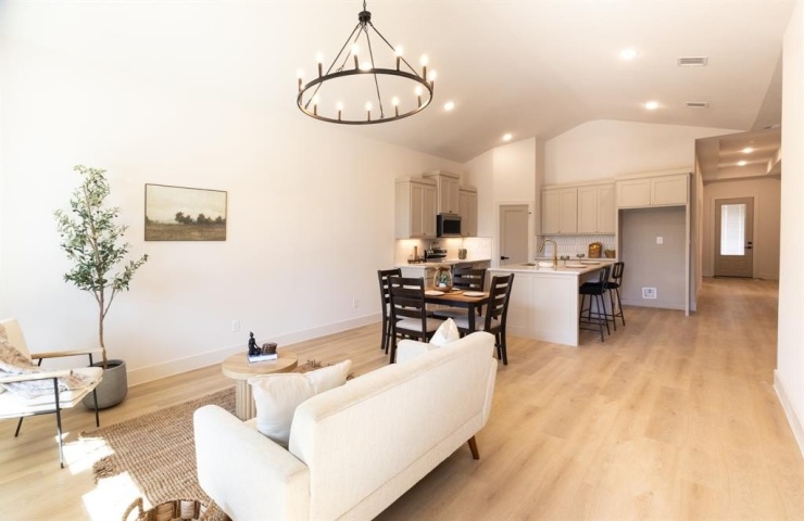 Property Description: New Build 2025—move-in ready! This modern 4-bed, 2-bath showcases 10–11 ft vaulted ceilings and luxury vinyl plank flooring throughout. Sunlit living room and flows into an open kitchen with a quartz-topped island, stainless sink, custom cabinetry, and stainless appliances. Retreat to the primary suite with a walk-in shower, double vanity with quartz counters, and a custom walk-in closet. Thoughtful extras include a dedicated laundry room, Large mudroom and a spacious backyard. Prime location minutes to downtown and major shopping. Experience effortless luxury and comfort—schedule your private tour today.