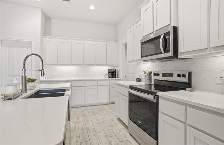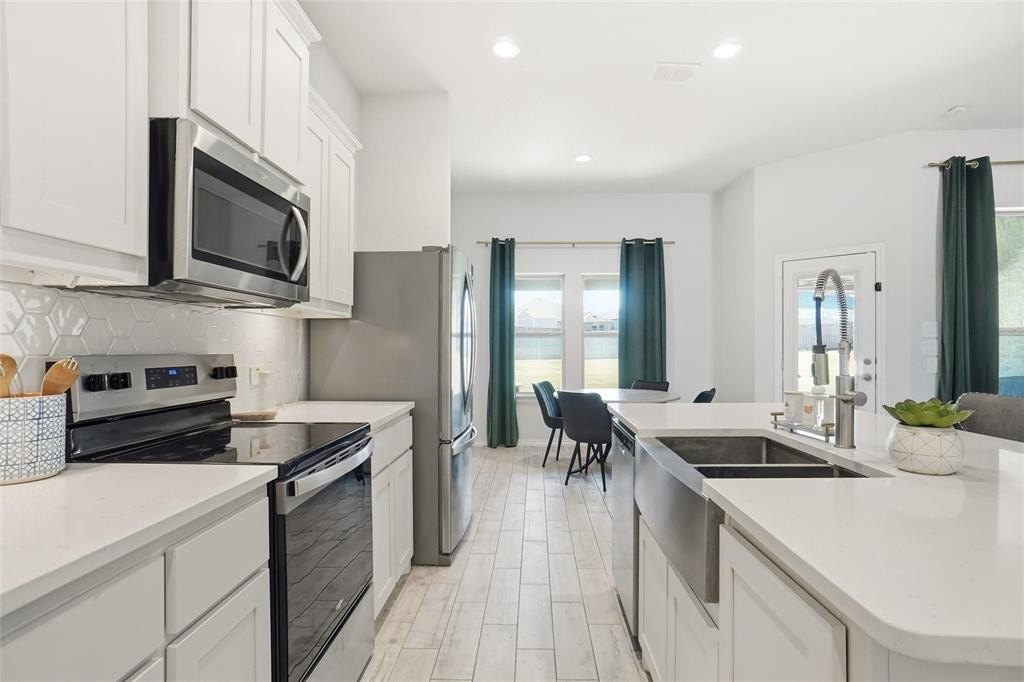 Property Description: Step into this sleek and stylish Burleson home, Joshua ISD, brimming with desirable features. The entryway welcomes guests and loved ones into an expansive living area beneath a towering ceiling, open to the kitchen and bathed in natural light. The gleaming kitchen features generous counter space, an island apron-front stainless sink, an abundance of cabinets & walk-in pantry, full-height tile backsplashes, bar seating, and a sunny breakfast area. The primary bedroom is spacious, with a high vaulted ceiling, a lovely bay window, and a gorgeous en suite bath offering an oversized glass & tile shower, double vanity, and unbelievable storage. Out back, enjoy a large covered patio and a vast backyard with lots of space to relax and entertain. Community features include a sparkling pool, a 20-acre stocked pond, walking trails, and multiple parks & sport courts. Easy access to Hwy 174 and I35W. Nearby great shopping, dining, and entertainment options at Old Town Station and Burleson Town Center.