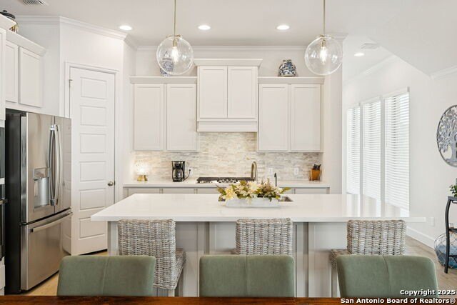 Property Description: This stunning one year old home offers the perfect blend of comfort, space, and elegance. Loaded with upgrades, this one story open floorplan home features a three car garage, extended covered patio, quartz countertops with a massive island, gas cooking, pendant lighting, mud room and a master bath with garden tube, glass enclosed shower and two walk-in closets. Upgrades include a water softener, crown molding added throughout the living spaces, reverse osmosis, all tilework sealed including sun deck coating on the back porch, and much more.