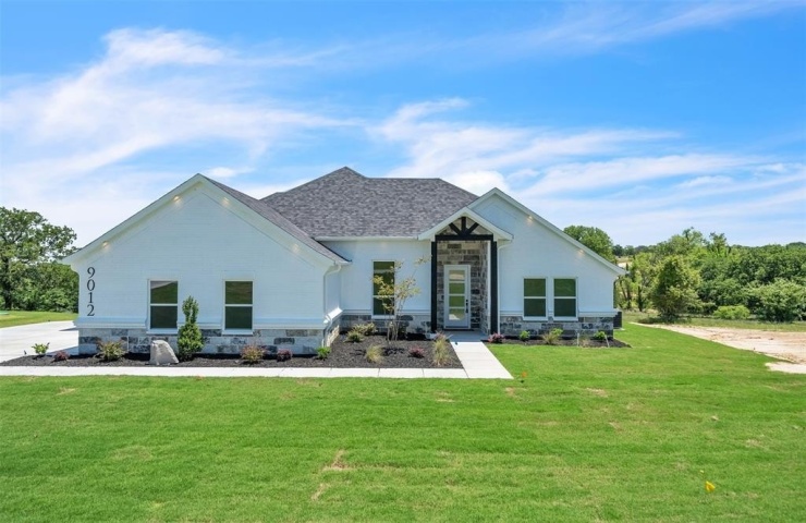 Property Description: Welcome to a Byron G Custom Home! This stunning new construction offers an inviting open-concept floor plan featuring a floor-to-ceiling wood-burning fireplace and porcelain wood-look tile throughout the main living areas. Thoughtful finish-outs and elevated upgrades create a luxurious yet comfortable feel from the moment you step inside. The beautifully designed kitchen includes custom cabinetry, a striking island with pendant lighting, and the classic white apron-front porcelain sink you’ve always wanted. Just off the kitchen, you’ll find a charming breakfast nook—perfect for morning coffee or casual dining. This home also features an additional room ideal for a dedicated office space or easily utilized as a 4th bedroom.Your primary suite awaits with a spa-like bath showcasing a relaxing garden tub, a spacious walk-in shower with seamless glass, dual sinks, and an oversized custom walk-in closet. Step outside to enjoy stunning Texas sunsets on the back patio, overlooking the beautifully landscaped and oversized backyard. The home is fully spray-foam insulated, including the garage, ensuring energy efficiency and comfort year-round. Situated on a generous 1+ acre lot and packed with high-end interior and exterior upgrades, this home truly stands out. Come see this one in person, your dream home awaits.