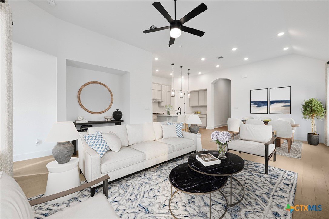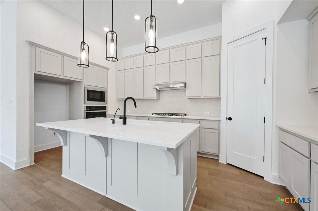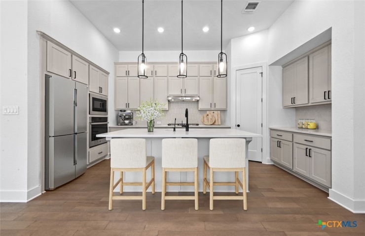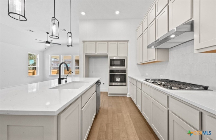 Property Description: Home offers tons of curb appeal with custom landscape package in front and back for added privacy / design. Oversized homesite - 55 ft wide! Home offers 4 beds with TWO flex-spaces (Study and Media Room). Also offers private mother in-law suite with full bath attached. Kitchen is gourmet with designer cabinets and cabinet hardware included. Wood floors throughout all common areas, Study and Primary Bed. Black plumbing fixtures, light fixtures and door hardware throughout. Primary Bed offers bay window with sitting area and luxury en-suite bath featuring freestanding tub and separate shower. GE Fridge, Washer and Dryer Included! Blinds throughout with upgraded shutter on front Study window. Full sod, irrigation and fence. Smart home technology package included! Energy STAR home!