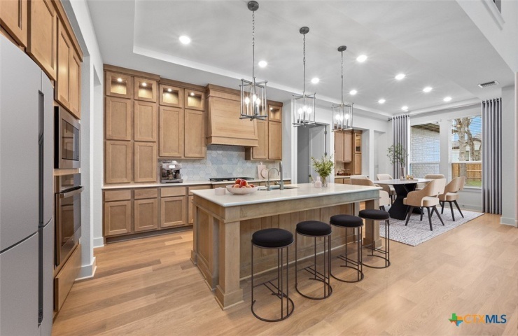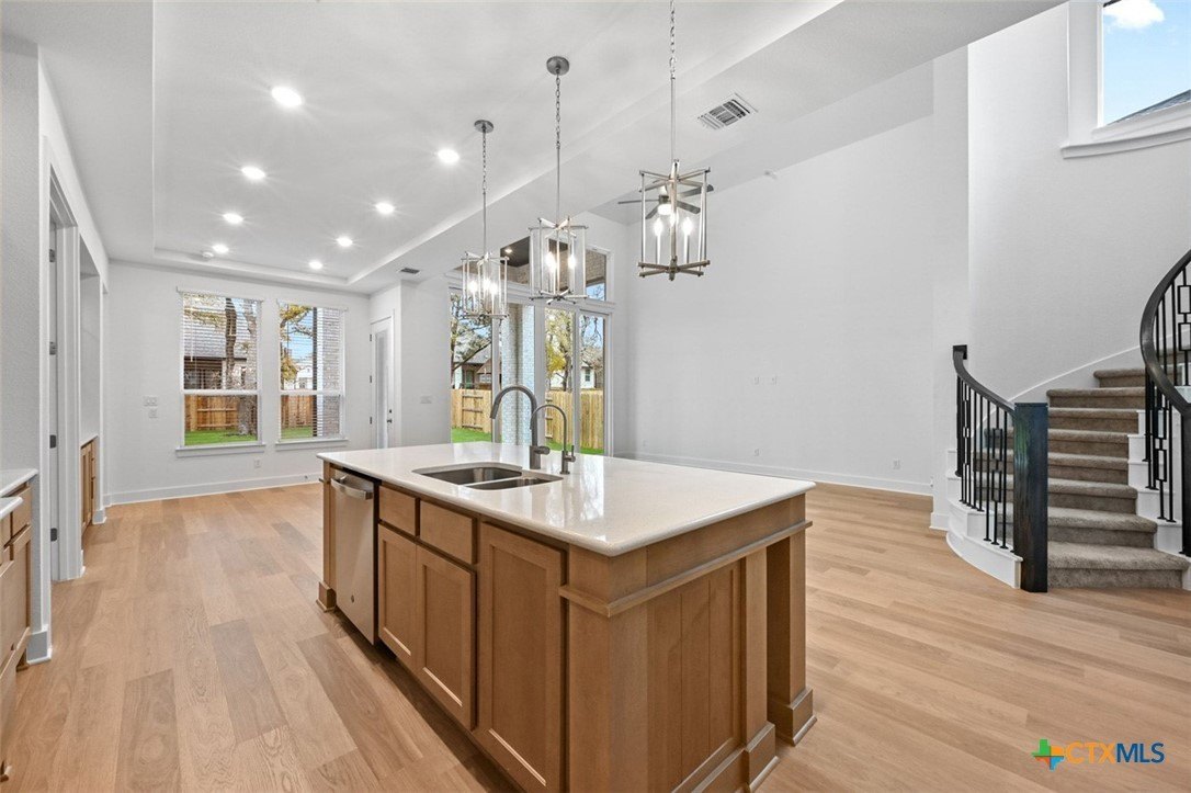 Property Description: This home truly has the WOW factor! Home offers spacious covered front porch with double-door main entry. 2-story ceiling height in entry & living with grand spiral staircase for high-end feel. 2 Beds + Study + Media Room on 1st floor with 3 Beds + Game Room on 2nd floor. Media Room offers 7-speaker pre-wire & ALL walls insulated for perfect movie room! EXPANDED SECONDARY BEDROOMS with full baths attached so everyone has space to unwind & relax! Luxury wood-look floors throughout all common areas & Study. Home offers gourmet farmhouse kitchen with decorative cabinets / large island, glass inserts, puck lights with built-in hutch for added storage / design. Primary Bed is massive with separate sitting area & offers luxury en-suite featuring freestanding tub / separate shower plus TWO separate closets for easy living! Huge sliding glass doors in living that lead to oversized patio & private backyard - big enough for future pool! Gorgeous bookcase built-in shelves in Study & laundry room features cabinets + sink! Tons of mature oak trees preserved onsite for added privacy! Full sod, irrigation & fence. Blinds throughout! Smart home technology package included! Energy STAR home!