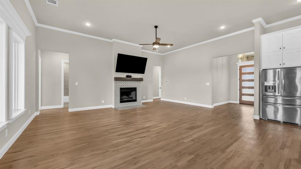 Property Description: Welcome to this stunning 2,884 sq ft residence in highly sought-after Peaster ISD, offering luxury living in a serene country setting. Step inside to soaring ceilings and a dramatic floor-to-ceiling brick fireplace with a floating mantle, creating a warm and inviting focal point in the main living area. Massive windows frame the gorgeous 2.454-acre treed lot, bringing natural light and picturesque views into every corner. The thoughtfully designed layout features 4 bedrooms plus a dedicated office that can easily flex as a 5th bedroom, den, or private retreat. A spacious additional bonus room provides even more versatility for entertainment, play, or media. Hand-scraped hardwood floors flow throughout the main spaces, complementing a chef-inspired kitchen appointed with floor-to-ceiling shaker cabinetry, a large quartz island, and a generous corner pantry. The oversized primary suite is a private sanctuary with tray ceiling, and an expansive ensuite bath complete with dual vanities, a walk-in shower, separate soaking tub, and seamless access into a massive walk-in closet. From there, enjoy a beautifully designed pass-through into the galley-style laundry room and directly into the mudroom—an elevated and functional flow that enhances everyday living. Enjoy wood-burning fireplaces both inside and out, including on the large back patio overlooking the lush, partially fenced property with a fully fenced section ideal for pets or play. Located in a quiet cul-de-sac and just 10 miles north of downtown Weatherford, this remarkable home offers the perfect blend of luxury, privacy, and modern convenience.