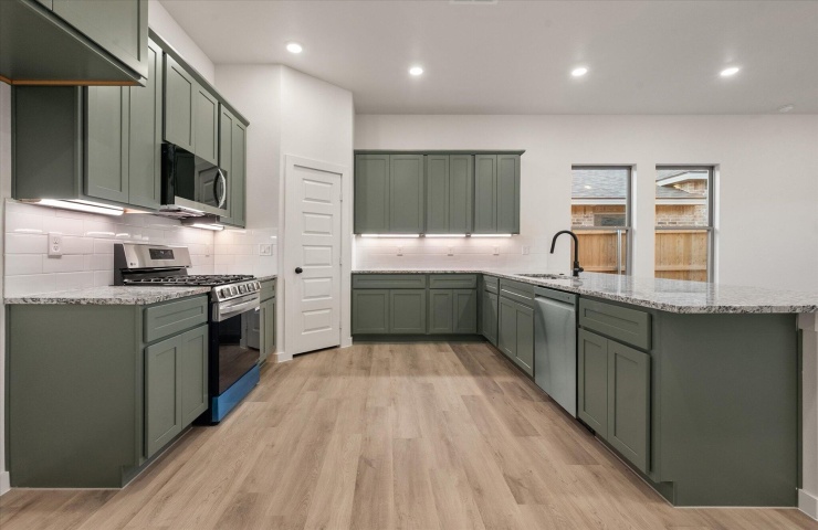 Property Description: Buy NOW and get up to $10,000 USE-IT-YOUR-WAY CASH! This beautifully designed home features a classic brick exterior and a covered front entryway, offering both curb appeal and comfort. Inside, luxury vinyl plank flooring flows seamlessly through the open-concept kitchen, living, and dining areas. The kitchen boasts granite or quartz countertops, a spacious peninsula with bar seating, stainless steel appliances, and a large enclosed pantry. Relax in the cozy living room by the corner brick fireplace, adding warmth and charm. The secluded master suite is a true retreat, featuring a drop-in tub, walk-in shower, his and hers vanities, and a walk-in closet with direct access to the utility room. A covered back patio provides a perfect outdoor space to unwind. Premium plumbing and lighting fixtures complete the home's sophisticated design.
