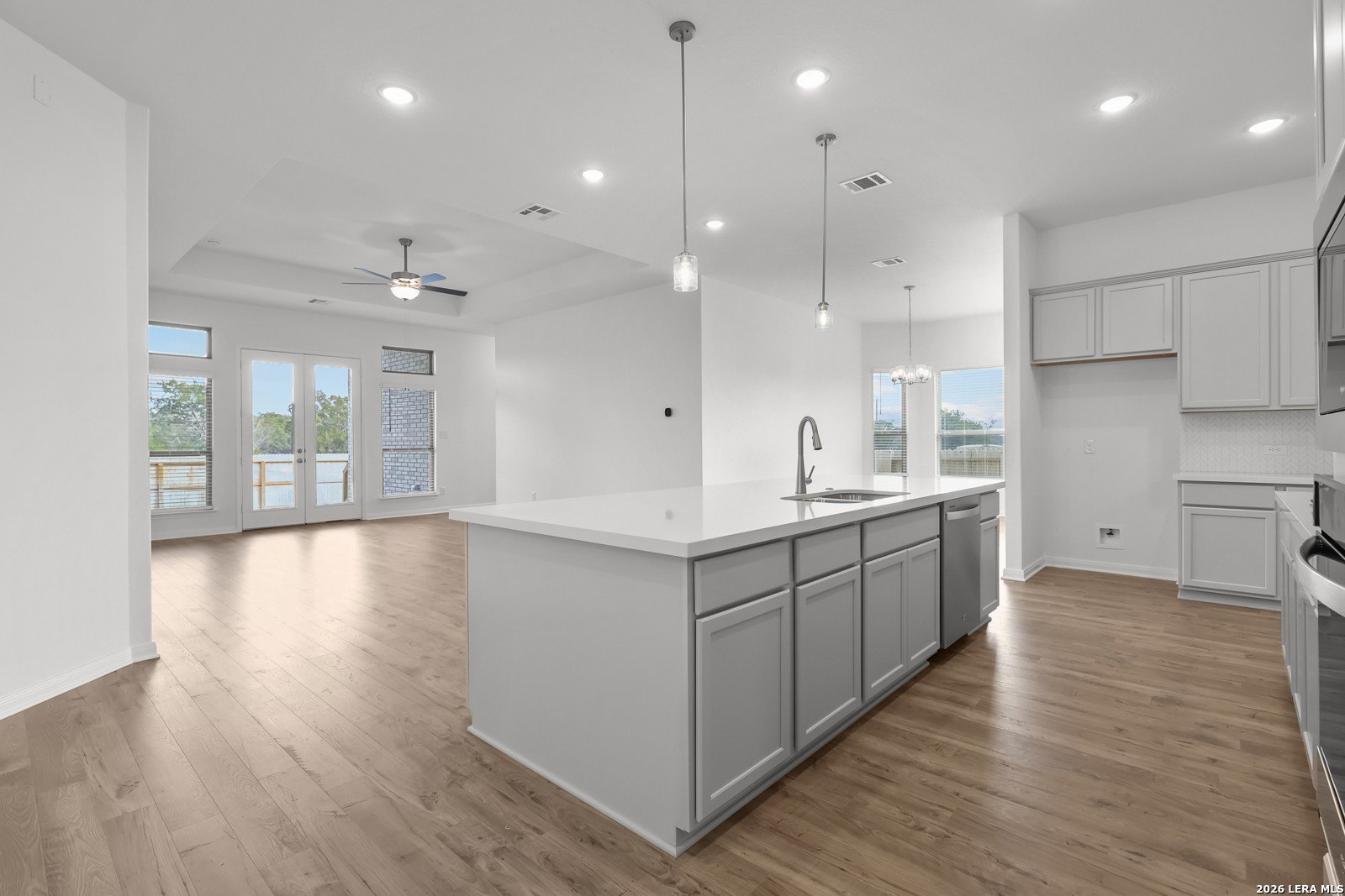 Property Description: This home has great curb appeal with a stone/stucco exterior with an amazing layout and many custom features. As you step into this home, you are greeted by high, tray ceilings flanked with a private study. The gourmet kitchen is a chef's dream, equipped with an oversized granite island work center that overlooks the family room and formal dining room. The large flex room can be turned into a man-cave, workout room or hobby space. The primary retreat is complete with dual vanities, a separate oversized shower and a large closet. The covered, Texas-sized patio will make you enjoy fun evenings outdoors. This home is a certified Environments for Living Platinum home with a 3-year heating and cooling guarantee. Come visit today!