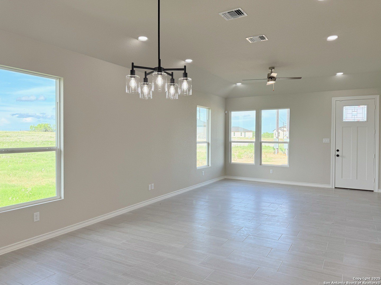 Property Description: Experience the perfect blend of wide-open in this beautiful 3-bedroom, 2-bath home just minutes from downtown La Vernia and a short 30-minute drive to San Antonio. Nestled on a generous 0.87-acre lot, this single-story home boasts a modern open-concept layout with no interior steps and durable tile flooring throughout. Soaring ceilings and 8-foot doors enhance the open feel, while quartz countertops add a touch of elegance to the kitchen and bathrooms. The spacious primary suite includes a sleek walk-in shower with glass shower doors for added comfort. With plenty of indoor and outdoor space, this property is ideal for anyone seeking comfort, style, and a little extra elbow room. Don't miss the chance to make it yours!
