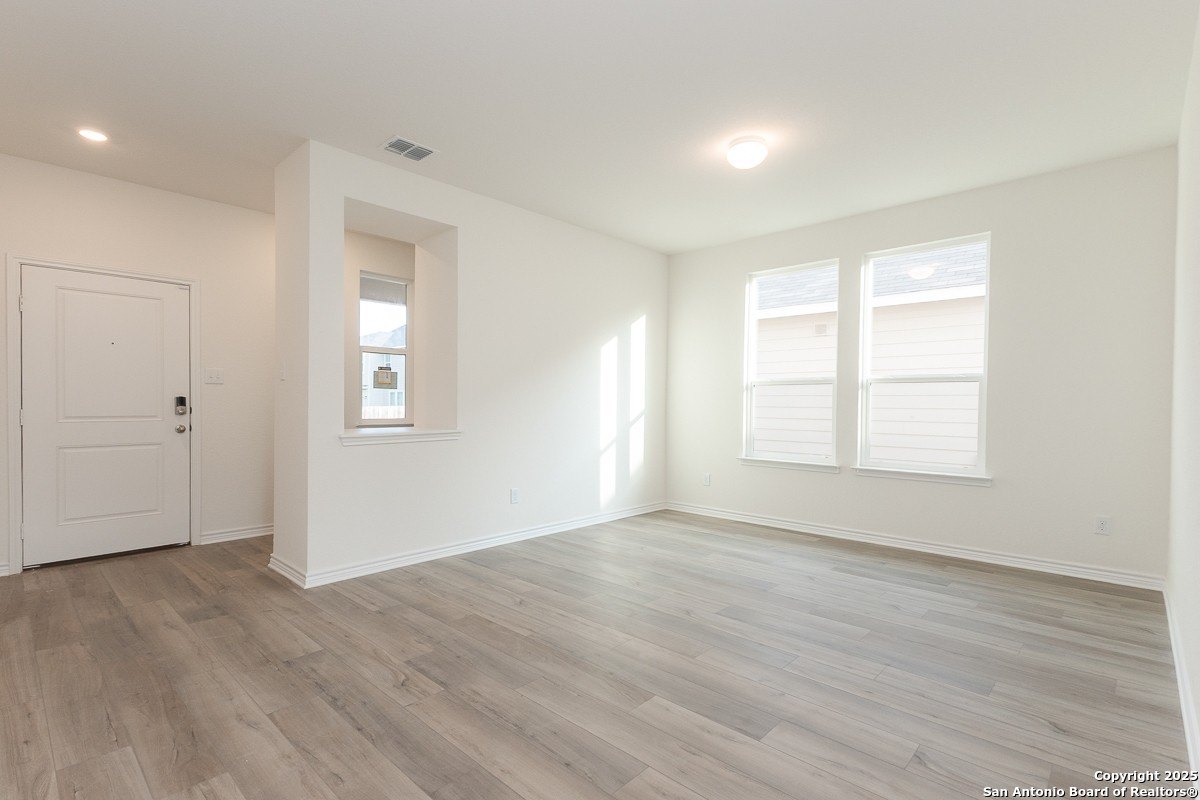 Property Description: This thoughtfully designed home features 9-ft. first-floor ceilings that create a spacious, open feel. The kitchen is equipped with Whirlpool stainless steel appliances, Woodmont Belmont 42-in. upper cabinets, a Daltile tile backsplash, and an extended breakfast bar-perfect for casual dining and entertaining. The primary bath offers a raised vanity, upgraded cabinets, and a 42-in. shower with a sleek Daltile tile surround. Stylish details include a Carrara-style entry door, Kwikset Polo interior door hardware, and vinyl plank flooring in the bathrooms, kitchen, and great room. Additional highlights include a wireless security system, soft water loop, fully sodded yard, and automatic sprinkler system for easy maintenance.