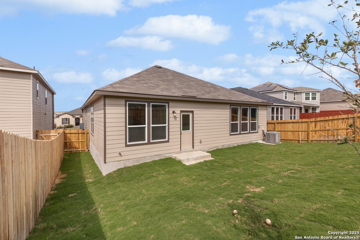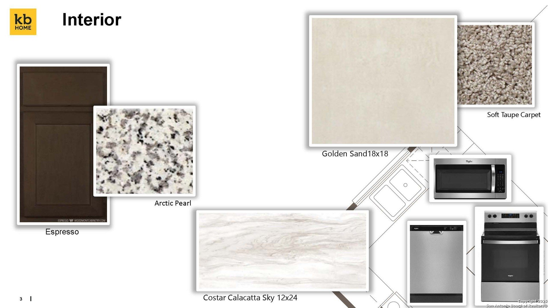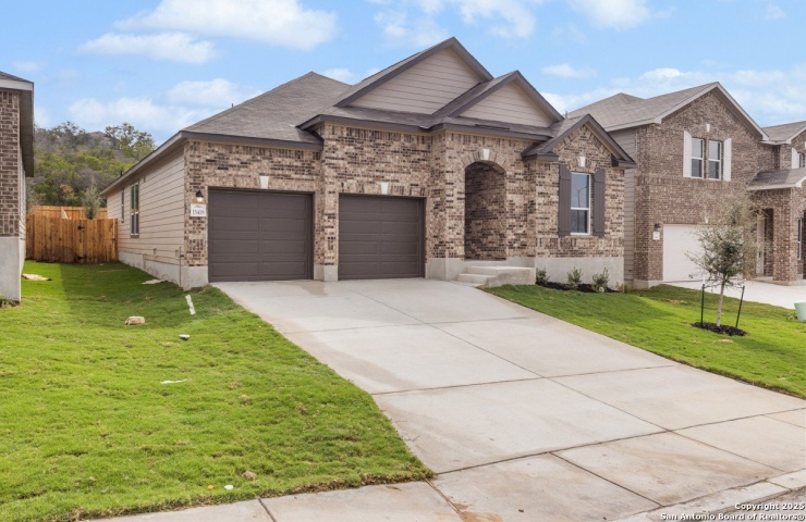 Property Description: Experience comfort and style in this thoughtfully designed home featuring 9-ft. first floor ceilings and Stella Vista ceramic tile flooring in the kitchen, bathrooms, and great room. The kitchen showcases Whirlpool stainless steel appliances, Woodmont Belmont 42-in. upper cabinets, a Daltile tile backsplash, granite countertops in Arctic Pearl, and an extended breakfast bar. The primary bath includes upgraded cabinets and a 42-in. shower with a Daltile tile surround. Decorative touches like a Carrara-style entry door and Kwikset Polo interior hardware add charm. Enjoy added convenience with a wireless security system, fully sodded yard, and automatic sprinkler system.