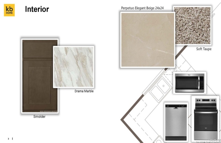 Property Description: Step into comfort and style with 9-ft. first-floor ceilings and elegant Perpetuo Matte ceramic tile flooring in the living room, kitchen, and baths. The kitchen features Whirlpool stainless steel appliances, Woodmont Dakota Shaker panel 42-in. upper cabinets, an extended breakfast bar, and a sleek Moen faucet. The spacious primary bath offers upgraded cabinets, an extended vanity with knee space, and a 42-in. garden tub/shower with Daltile tile surround. Additional highlights include a Carrara-style entry door, Kwikset Polo interior hardware, a wireless security system, a fully sodded yard, and an automatic sprinkler system.