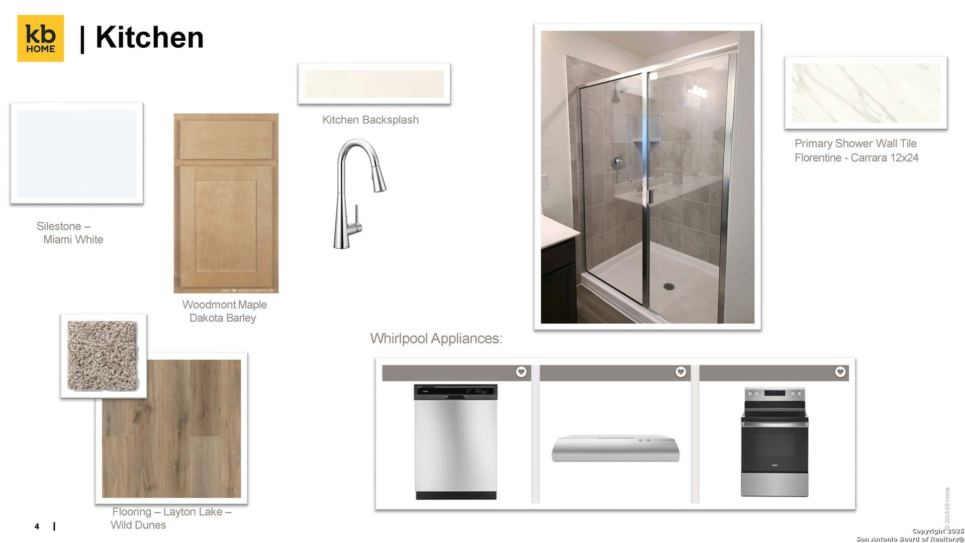 Property Description: This thoughtfully designed home features 9-ft. first-floor ceilings and a versatile den with elegant double doors. The kitchen shines with Whirlpool stainless steel appliances, Silestone countertops in Miami White, a Daltile tile backsplash, and 42-in. Woodmont Dakota Shaker cabinets. Relax in the stylish primary bath with upgraded cabinets and a spacious 42-in. Daltile tiled shower. Decorative touches include a Carrara-style entry door, Kwikset Polo interior knobs, and durable vinyl plank flooring in the kitchen, great room, and bathrooms. Additional highlights include a soft water loop, wireless security system, automatic sprinkler system, and a fully sodded yard-designed for comfort, convenience, and everyday style.