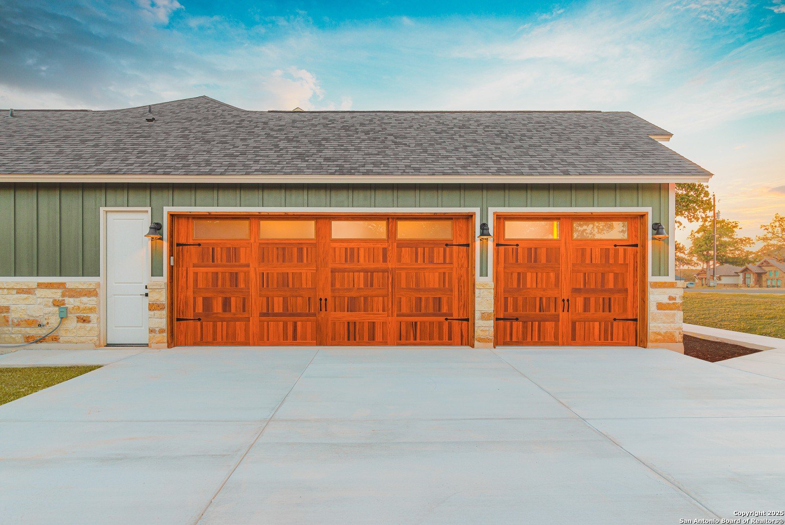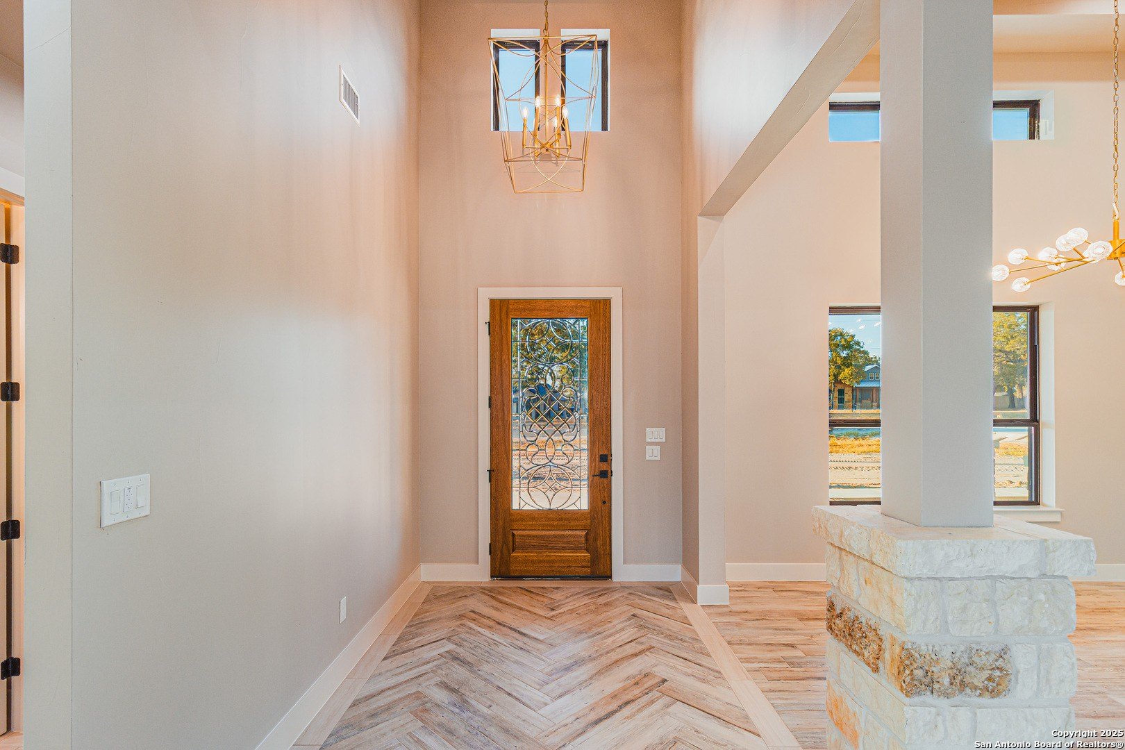 Property Description: This property exudes Elegant Farmhouse Charm: Newly Crafted with 3-car garage, Beautifully Situated on 1-Acre of Wooded Countryside! The attractive exterior beckons you to come experience Delightful Finishes throughout, offering spacious open living that incorporates both Dramatic Accents & Comfortable Features. Expansive ceilings welcome you in the Entry & Dining, with a graceful vaulted Living Room ceiling & solid plank mesquite mantel at the fireplace ... chic wood-tile flooring flows seamless through these open spaces. The "heart of the home" Gourmet Kitchen is Incredibly Stylish: Gleaming Quartzite Counters, Classic Custom Cabinetry w/Ceiling Height Glass Uppers, Generous Island w/smart pop-up charging stations, KitchenAid Stainless Steel Appliances, Champagne Bronze hardware, black&gold Faucet + Pot Filler, and a Fabulous Pantry w/extra cabinetry! The thoughtful layout affords separated bedroom areas for convenience & privacy: Master Retreat affords a Luxury Bath with sparkling tile, free-standing tub & dual-head shower; 2nd & 3rd bedrooms access the Hall Bath w/tiled walk-in shower; 4th bedroom is separated with its own bath that also opens to the back patio (ideal for outdoor activities & future pool). Exceptional Laundry Room w/Abundant Cabinetry & sink; and the Mud Bench at hall by garage adds Beauty & Function. Enjoy the Pleasant Countryside from the Covered Back Patio, and appreciate being under 10 minutes from the amenities of La Vernia, with big city San Antonio within 35 minutes. 1-2-10 year bonded builder warranty. Hondo Ridge is a wonderful country neighborhood with the advantage of Fiber Internet. Come enjoy!