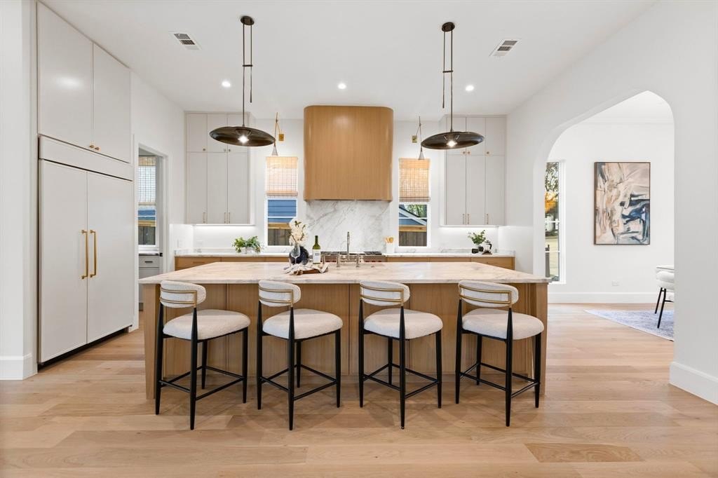 Property Description: Stunning California Modern home located in the heart of Lakewood, just steps from White Rock Lake and premier hiking-biking trails. This luxury residence features 4 bedrooms, 4 full bathrooms, and 2 half bathrooms with a sophisticated stucco exterior and warm modern design elements throughout. The open-concept floor plan showcases wide-plank white oak floors, custom cabinetry, and high-end appliances. The spacious downstairs master suite offers a serene retreat with spa-inspired finishes and generous closet space.