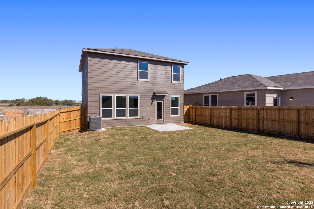 Property Description: Step into comfort and style with this thoughtfully designed home featuring soaring 9-ft. first-floor ceilings and modern finishes throughout. The kitchen shines with Whirlpool stainless steel appliances, Woodmont Belmont 42-in. upper cabinets, a Daltile tile backsplash, extended breakfast bar, and granite countertops in Barcelona. Relax in the spacious primary bath offering upgraded cabinets and a 42-in. garden tub/shower with Daltile tile surround. Decorative touches include a Carrara-style entry door, Kwikset Polo interior door hardware, and vinyl plank flooring in key areas. Enjoy added peace of mind with a wireless security system and the convenience of an automatic sprinkler system and fully sodded yard.