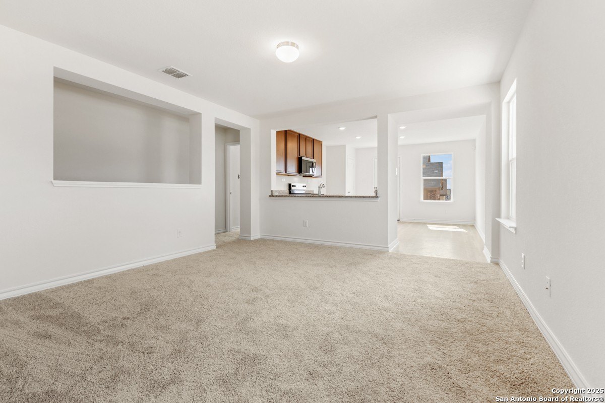 Property Description: Step into modern comfort with this beautifully designed home featuring an open floor plan perfect for everyday living and entertaining. The kitchen shines with Whirlpool stainless steel appliances, elegant Woodmont Cody 42-in. upper cabinets, Barcelona granite countertops, and a sleek Moen faucet. The primary bath offers relaxation with a 42-in. garden tub/shower accented by a Daltile tile surround. Decorative touches include a stylish Carrara-style entry door, Kwikset Polo knob hardware, and cozy Shaw carpet in the bedrooms, kitchen, bathrooms, and laundry room. Enjoy peace of mind with a built-in wireless security system and outdoor ease with a fully sodded yard.