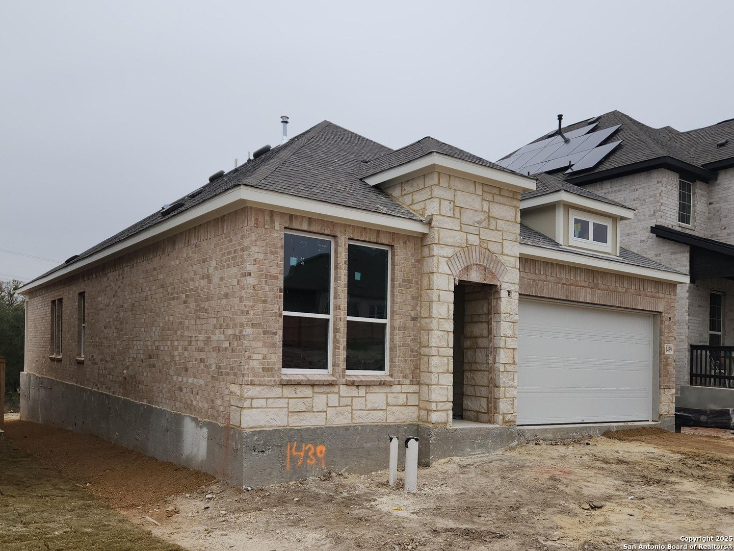 Property Description: Charming one and a half story home designed for comfort and convenience. The gourmet kitchen offers abundant counter space and flows into a spacious family room with two large windows that frame views of the backyard and fill the space with natural light. The secluded primary suite provides a peaceful retreat with an oversized shower, relaxing garden tub, double vanities, and a generous walk-in closet. Three secondary bedrooms each feature their own walk-in closet and share a well laid out bath that makes morning routines easy. A covered patio extends the living space outdoors and is perfect for relaxing or entertaining. The home also includes a full sprinkler system for easy lawn maintenance and year-round curb appeal. This home is part of our Sapphire Collection - bold and full of personality. Bright whites and deep blues mix with layered textures for a striking effect. Sapphire is for those who love to host, make a statement, and live with confident, unmistakable style. This home is in Arcadia Ridge, a community with 200 acres of open space, resort-style pool, playgrounds, trails, and easy access to shopping, dining, and major employers.