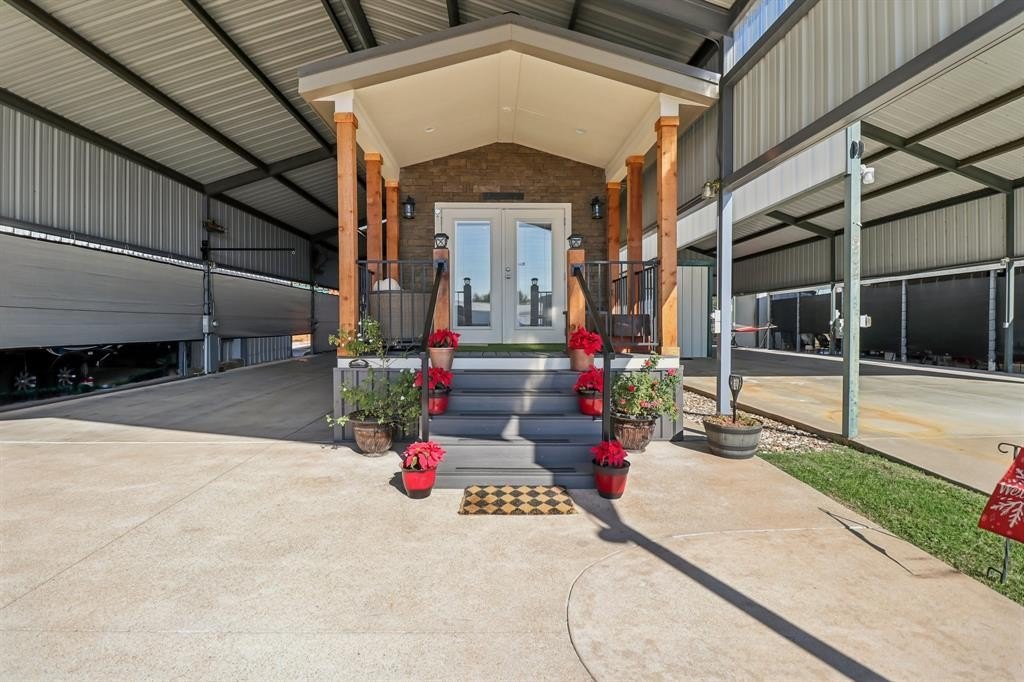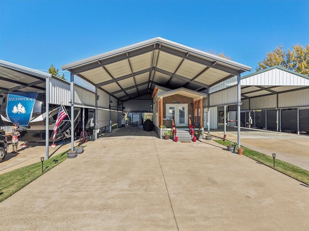 Property Description: Welcome home to Lake living, recreational living, and a vacation lifestyle 365 days a year! Gorgeous and cozy Park Model home located in the heart of Granbury and just across the street from Lake Granbury! Enjoy a short walk to the Historic Granbury square or a quick and easy boat ride on Lake Granbury and just minutes from the City Beach. This Park Model home comes with its very own covered boat dock with electricity and a cradle boat lift. The basics: 1 bed, 1.5 bath, 400 square foot Park Model home custom built in 2024! Every upgrade and convenience has been carefully thought out and executed with this home and property. Located in the wonderful lakeside community of Brazos Harbor! The finer details: Entire home is covered by a 30'wide X 85'Long X 19.5'High full metal canopy. In addition to covering the house you still have room for 4 vehicles to fit under the metal canopy! Detached full size 10X15 laundry room with a half bath and office area! Unique and very functional custom built elevator takes you up to the storage area above the separate utility room. Wrought iron fenced back yard with trees and landscaping and with a separate 9X16 workshop connected to electricity. Covered metal canopy includes automatic roll down shades on the East side that can help block the sun and wind for the ultimate in comfort.