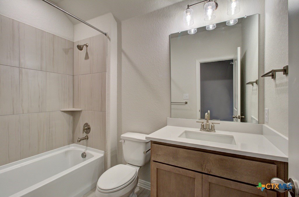 Property Description: Welcome to the Bermuda plan by DRB Homes. This home offers a thoughtful layout with a focus on comfort, function, and modern design. The exterior features a covered patio, full yard sprinkler system, a six foot privacy fence with a gate, and a two car garage. Inside, the kitchen presents an upgraded layout that includes a built in oven and microwave, a gas cooktop, and an added cabinet above the refrigerator space for extra storage. The kitchen also provides forty two inch wood cabinetry with crown molding, stainless steel appliances, a kitchen island with sink, a corner pantry, Omegastone countertops, and a ceramic tile backsplash. The owners suite is located at the rear of the home for increased privacy. It includes a Marlena dual sink vanity with forty two inch mirrors, a generous closet, a private water closet, a linen closet, and a large free standing shower with tile surround and a clear glass door. Secondary spaces are designed for everyday convenience and flexibility. Residents of Meyer Ranch enjoy award winning community amenities such as The Hall for events and gatherings, a resort style pool, a dog park, a playground, and community paths and trails. Located on Highway forty six in New Braunfels, this area also provides quick access to Spring Branch and Highway two eighty one. Experience the comfort of hill country living and schedule a tour of DRB Homes at Meyer Ranch.