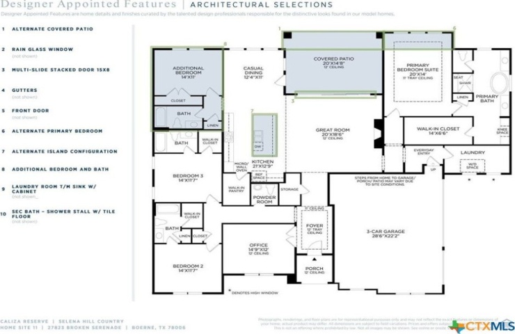 Property Description: MLS 599546- Built by Toll Brothers, Inc. - May 2026 completion! ~ The Selena seamlessly blends elegance with everyday comfort. A striking tray ceiling highlights the foyer, which presents alluring views of the expansive great room beyond. A casual dining area flows seamlessly into the beautifully designed kitchen, complete with a center island and a generous walk-in pantry. The gorgeous primary bedroom suite is a true retreat, featuring a tray ceiling, an oversized walk-in closet, and a serene private bath with dual vanities, a soaking tub, a separate shower with seat, and a private water closet. Two secondary bedrooms, each with their own private bath and walk-closet, offer comfort and privacy for family or guests. A gorgeous covered patio adds seamless indoor-to-outdoor living opportunities. Additional features include a a versatile flex room, a private office, an everyday entry, a powder room, easily accessible laundry, and storage throughout. Disclaimer: Photos are images only and should not be relied upon to confirm applicable features.