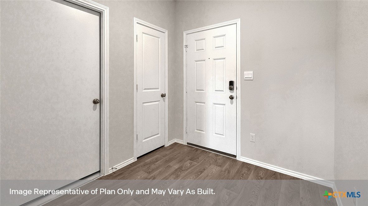 Property Description: JANUARY ESTIMATED COMPLETION DATE. The Denton is a single story home perfect for small families looking for extra space. Inside this 1,574 square foot home, you will find 3 bedrooms, 2 bathrooms and a 2-car garage. Our homes in Bollinger feature our modern farmhouse exteriors. Coming into the house from the covered front porch, you'll find a foyer and hallway that takes you to the heart of the house, the living space. The open concept design of kitchen, dining room and family room allows for easy entertaining and everyday living. The L-shaped kitchen features an island with undermount sink, granite countertops, 4" backsplash, a pantry closet, 36" upper cabinets, and stainless-steel appliances, including a gas range. The primary bedroom is off the dining room and has its own attached bathroom. Enjoy the walk-in shower, cultured marble vanity with dual sinks, and separate door to the toilet for privacy. A huge walk-in closet with generous shelving is connected to the bathroom. You will have plenty of space in this closet for your accessories or prized possessions. The secondary bedrooms are off the foyer at the front of the home. In the hall between the bedrooms is the secondary bathroom, which includes a shower/tub combination. Each bedroom includes a closet with shelving. The utility room is tucked away between the foyer and kitchen, convenient to all bedrooms once the clothes are cleaned. The Denton includes vinyl flooring throughout the common areas of the home, and carpet in the bedrooms. A covered back patio is also included in the Denton plan. All our new homes feature Bermuda sod, an irrigation system in the front and back yard, and a 6' privacy fence around the back yard. This home features our America's Smart Home base package, which includes the Video Front Doorbell, Front Door Deadbolt Lock, Home Hub, Thermostat, and Deako(R) Smart Switches.