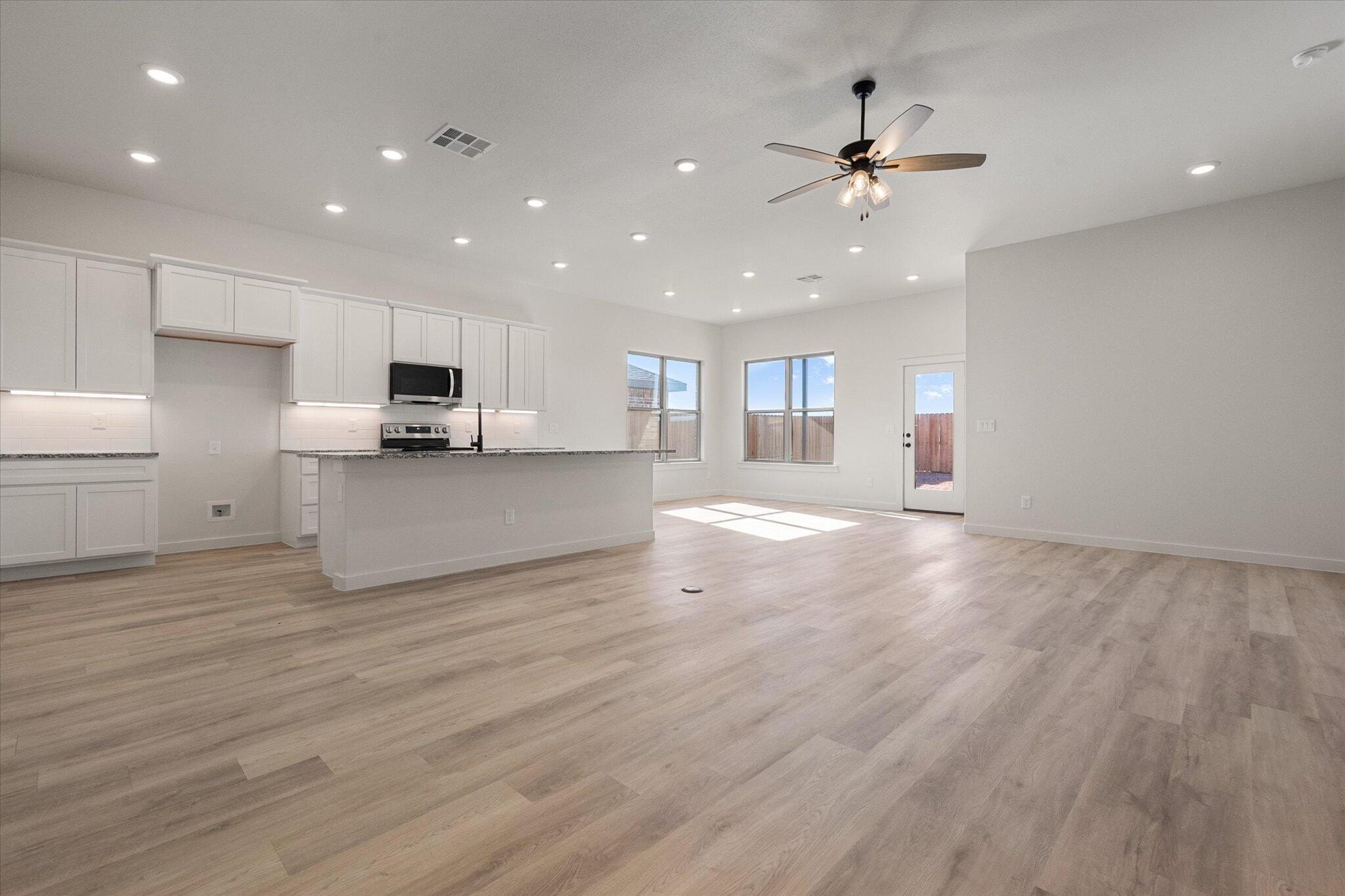 Property Description: Buy NOW and get up to $10,000 Use-It-Your-Way Cash! This stunning home features a brick exterior with stone accents and a covered front entryway. Inside, luxury vinyl plank flooring flows through the open-concept kitchen, living, and dining areas. The kitchen offers granite or quartz countertops, a spacious island with bar seating, stainless steel appliances, and a large enclosed pantry. The living room is highlighted by a cozy corner brick fireplace. The secluded master suite includes a drop-in tub, walk-in shower, his and hers vanities, and a walk-in closet. A covered back patio provides an incredible outdoor space. Premium plumbing and lighting fixtures complete this beautiful home.