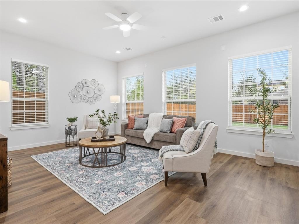 Property Description: New construction built in 2025, this 4-bedroom, 3.5-bath home sits on a generously sized corner lot surrounded by beautiful shade trees, offering an ideal blend of stylish luxury and timeless setting. The open, light-filled floor plan features luxury vinyl plank flooring throughout the downstairs. There’s a spacious living area lined with oversized windows. And a modern gourmet kitchen equipped with quartz counters, a waterfall island with seating, stainless steel appliances, a large pantry, and an abundance of cabinet and counter space. The attached dining room includes a butler’s pantry for added convenience. And the downstairs guest suite, complete with a full bath, also flexes perfectly as a study. Upstairs hosts an expansive primary bedroom with a spa-inspired en suite featuring dual vanities, a soaking tub, walk-in shower, and generous storage, along with two additional bedrooms, a full bath, and a charming balcony ideal for neighborhood views and unwinding. The backyard offers a covered patio ready for customization and is enclosed with a stained cedar board-on-board fence for both privacy and style. Located close to Trinity Groves, minutes from AT&T Discovery District, near West Village, and with easy access to Downtown Dallas, this home delivers upscale urban living with unmatched proximity to dining, culture, and entertainment.