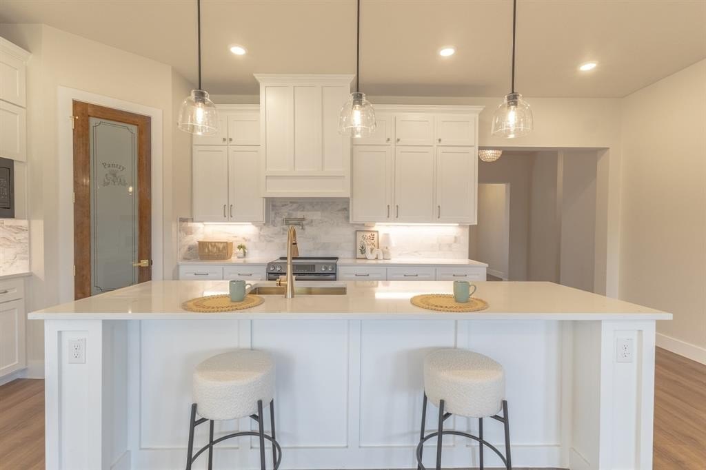 Property Description: New Construction!! Welcome to this stunning single-story home blends timeless curb appeal with fresh, modern finishes. The exterior showcases warm brick and stone accents, and inviting gable details that create a standout presence on the street. A wide driveway and welcoming front entry set the tone for the thoughtful design found inside. Step into an open-concept layout filled with natural light, where soaring ceilings and elegant finishes elevate everyday living. The gourmet kitchen is the centerpiece of the home, featuring custom white cabinetry, a large island with seating, quartz countertops, pendant lighting, and a stylish marble look backsplash. It flows seamlessly into the dining area and spacious living room, making it perfect for gatherings. The living area offers a clean, neutral palette with warm vinyl flooring, a modern ceiling fan, and generous space for relaxing or entertaining. Large windows brighten every corner, creating an airy and inviting environment. Master bedroom comes with his and hers private bathroom, walk in shower and a large walk in closet with tons of space to organize personal items. Tons of space in laundry room including a mudroom. With its thoughtful layout, quality craftsmanship, and modern farmhouse design, this home delivers comfort, style, and functionality ideal for anyone looking for a move in ready, picture perfect property.