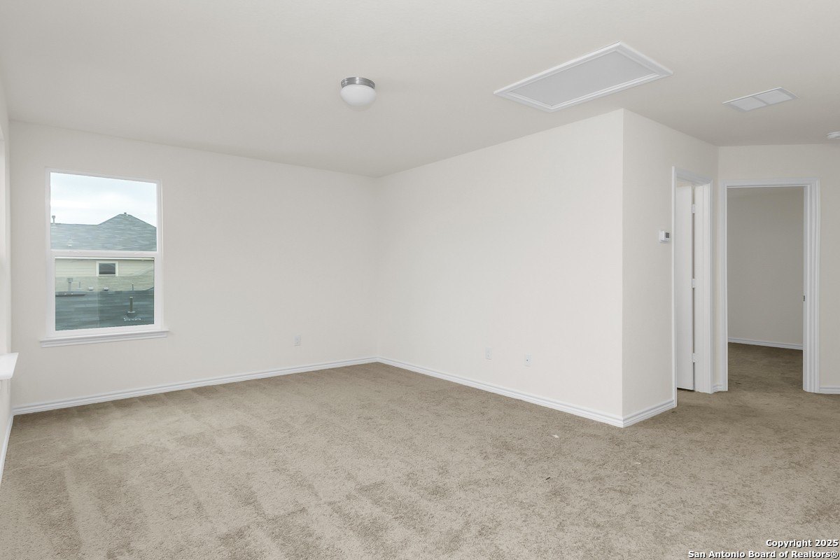 Property Description: This charming home offers 9-ft. ceilings on the first floor, creating a spacious and airy feel. The kitchen is equipped with Whirlpool stainless steel appliances, an extended breakfast bar, Moen faucet, and an undermount sink for a sleek, modern look. The primary bath features a 42-in. garden tub/shower combo with a stylish Daltile tile surround. A Carrara-style entry door adds curb appeal and a touch of elegance. Outdoors, enjoy a fully sodded yard and the convenience of an automatic sprinkler system, perfect for easy lawn maintenance year-round.