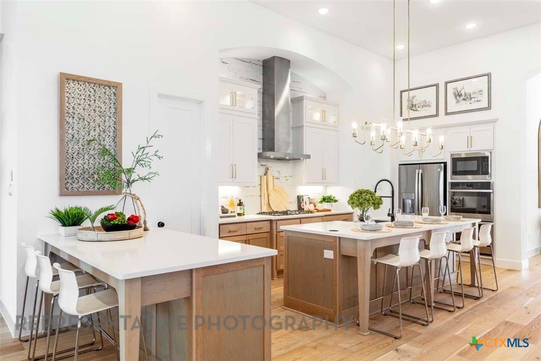 Property Description: This elegant 4 bedroom, 4.5 bathroom home all on ONE level home located on a cul-de-sac and boasts a swing in J Garage with plenty of storage! Walk in through the double front door entry to an open floor plan with 13' ceilings. The en-suite for guests is separated from the other bedrooms. The secondary bedrooms have been expanded and each have their own bathroom. This home features an entertainment room across from the kitchen and home office in the back. The fireplace in keeping space is cozy next to the dining and family room. The large extended outdoor living space is great for entertaining.