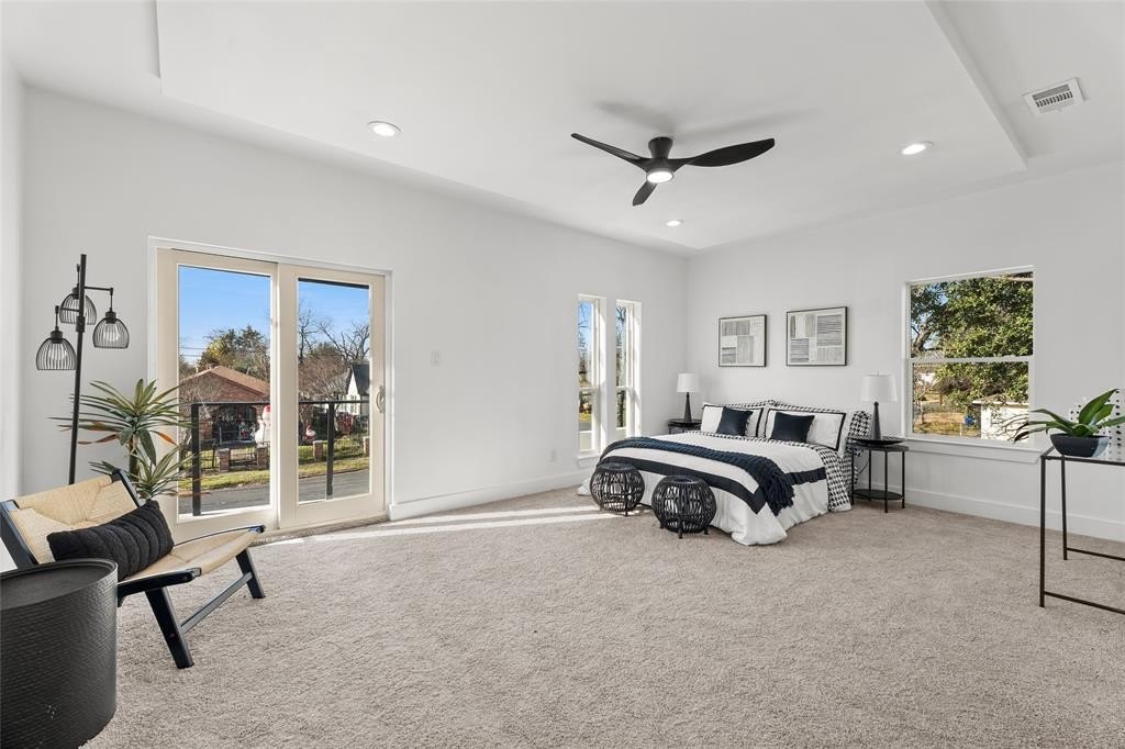 The open-concept floor plan is filled with natural light, creating a warm and inviting atmosphere ideal for both daily living and entertaining. A standout feature is the rarely available oversized primary suite, complete with dramatic three-quarter-length windows, a private patio, and abundant space to create your own relaxing sanctuary.