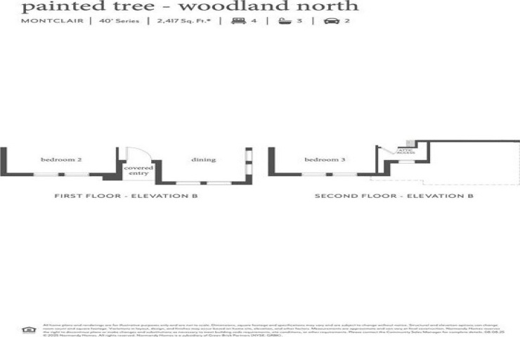 Property Description: NORMANDY HOMES MONTCLAIR floor plan. Discover the Montclair home plan offering 4 bedrooms, 3 bathrooms, and 2,417 square feet of thoughtfully designed living space. Located in the scenic Painted Tree Woodland North community, this two-story home features a private owner’s suite, a versatile gameroom, and a covered patio perfect for outdoor entertaining. The open-concept kitchen flows seamlessly into the dining and family rooms, creating a warm and inviting atmosphere for gatherings. With multiple walk-in closets, a dedicated utility room, and a two-car garage, the Montclair combines functionality with modern style. Ideal for families seeking comfort and convenience, this home plan is a standout.
