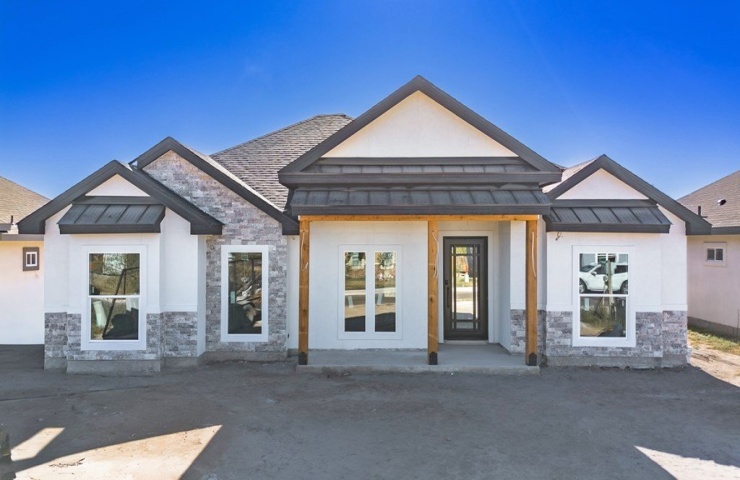Property Description: This beautifully designed ranch-style home features an open floor plan with tall ceilings and elegant custom ceiling details throughout. The home offers 1,646 sq. ft. of living space, including 3 spacious bedrooms and 2.5 bathrooms. The master bathroom features double vanities, a walk-in closet, a soaking (French) tub, and a separate walk-in shower. The kitchen is thoughtfully designed with custom white cabinetry, a large center island, and quartz countertops, ideal for both everyday living and entertaining. Additional highlights include a custom front door, custom interior doors throughout, and attractive stone accents on the front exterior. The 200 sq.ft. covered back patio overlooks the backyard with ample space to create your own outdoor entertaining area. Don't miss this opportunity—contact the listing agent for a private showing or additional information.
