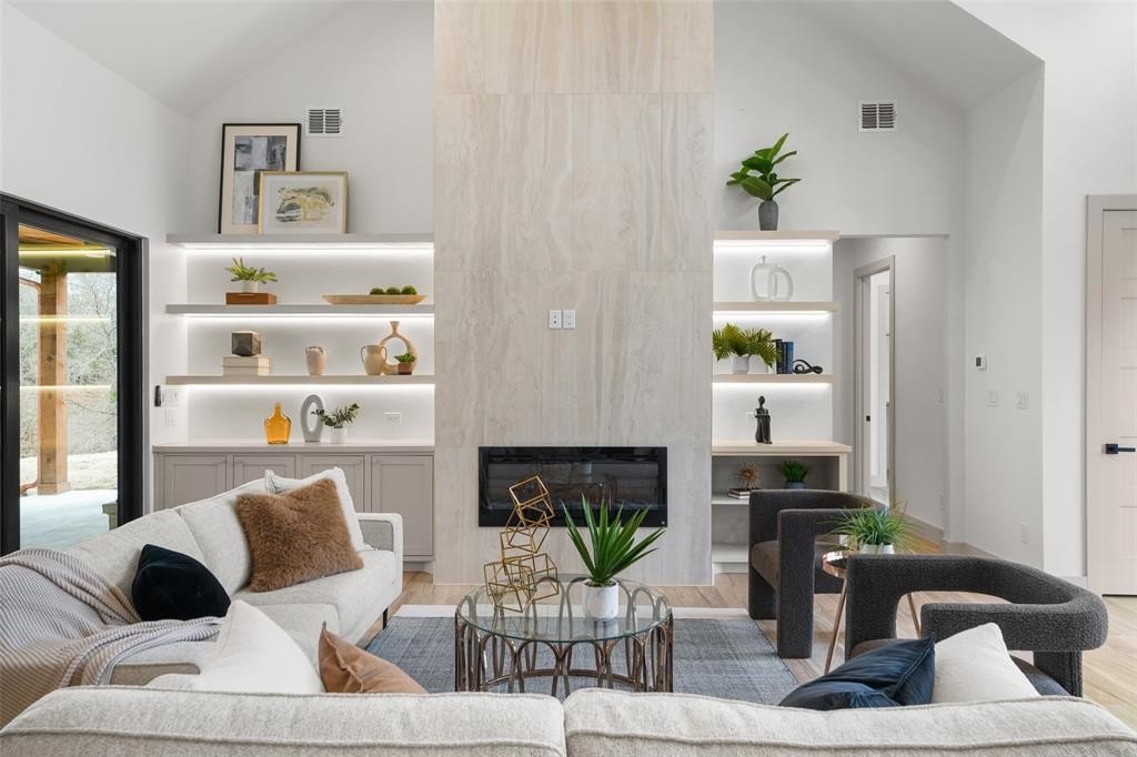 Property Description: Best access: From Payne Rd. to Alamo Rd. right on Park Way ** Extraordinary luxury lakefront retreat on Cedar Creek Lake, tucked away on a private, gated peninsula with only a handful of homes—where privacy, craftsmanship, and water access meet. Set on 1.7 acres with 300+ ft of lake frontage, offering room for an ADU or shop, 360° lake views (including deep-water views across the street), and direct access to a protected, multi-creek-fed cove that typically stays wet during low season—providing quiet water away from heavy boat traffic. A golf cart path leads directly from the home to the boathouse. Designed for refined living and entertaining, this home offers 4–5 bedrooms, 3.5 baths, and approx. 3,500 sq ft. Four bedrooms are on the main level, including the primary suite, while the upper level provides a 5th bedroom or flexible game-media space. Interiors showcase elevated finishes including imported Taj Mahal Quartzite countertops, handmade inset Shaker cabinetry, and a custom imported wallpaper mural. Architectural highlights include 17-ft ceilings, vaulted spaces, 8-ft five-panel doors, Lifeproof luxury vinyl flooring, porcelain tile baths, and curated fixtures. The kitchen features a separate prep kitchen-pantry, while an independent wet bar with wine chiller enhances entertaining. The primary suite offers a spa-inspired bath with dual vanities, soaking tub, crystal chandelier, expansive walk-in closet, and sliding exterior door. Outdoor living includes a large covered patio with wood-burning fireplace, copper rain gutters, lake-fed irrigation, and a private boathouse. While lake levels fluctuate, this cove typically allows year-round boat access. Nearby amenities include fishing pier, picnic areas, playground, swimming access, and boat ramp. Short-term rentals allowed—where luxury meets seclusion.