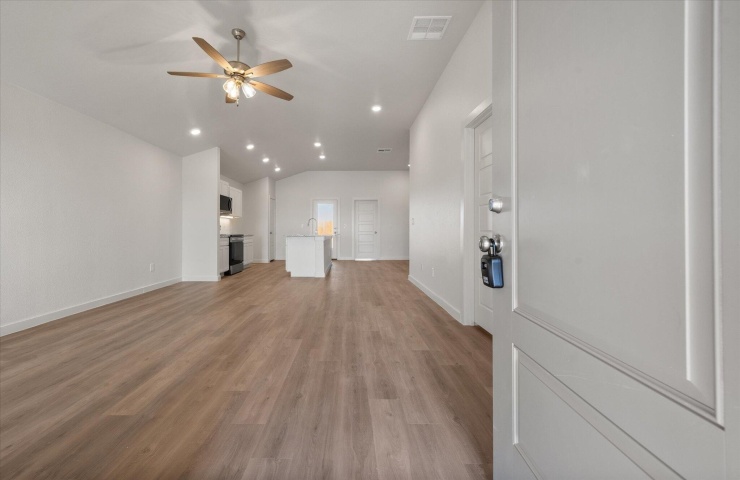 Property Description: Seller has already reduced the price by $14,505, giving buyers instant equity and unmatched value. NOW and get up to $8,000 Use-It-Your-Way Cash! This beautifully designed home showcases a full brick exterior with double columns framing a charming covered front porch. Inside, luxury vinyl plank flooring enhances the common areas, complementing the open-concept kitchen, living, and dining spaces. The kitchen features granite or quartz countertops, a spacious island with bar seating, stainless steel appliances, and an enclosed pantry. The secluded master suite includes a large walk-in closet, while both front and back covered patios provide perfect spots for relaxation. Premium plumbing and lighting fixtures add the finishing touch to this exceptional home.