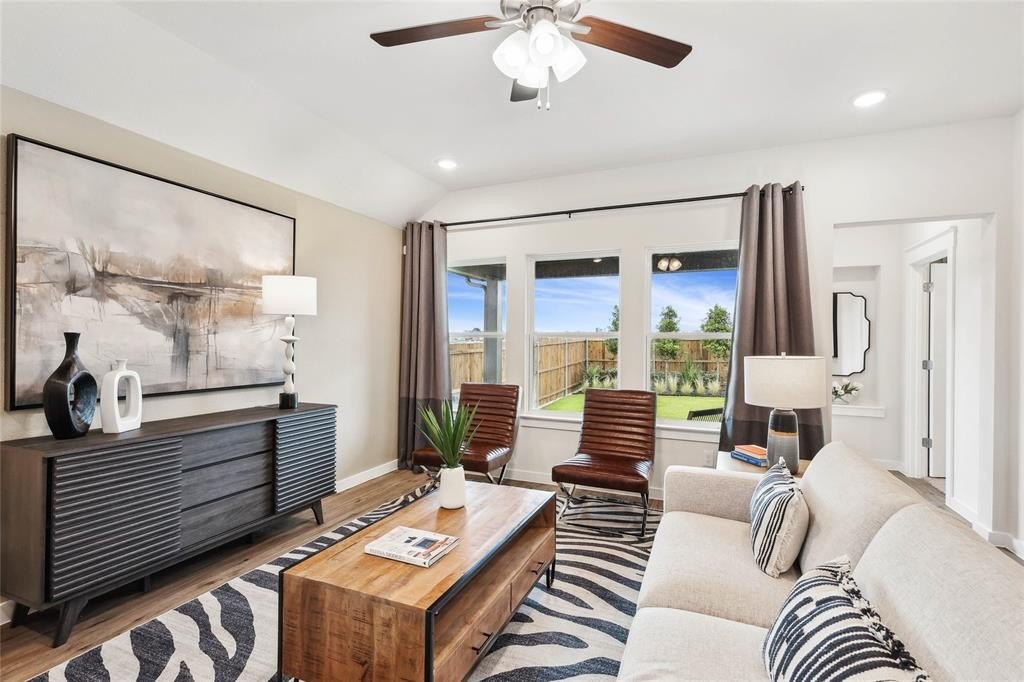 Property Description: Decorated Furnished Model Home. The Best Combination of Location, Style, and Price from the $300k's Minutes to McKinney. The Paramount Floor Plan our beautiful Single-Story DRB Homes! Feel right at home in this beautiful floor plan with a focus on privacy and comfort. You'll love the open-concept kitchen, complete with plenty of storage, a vent hood vented to the outside, an island that overlooks the great room and dining room. Behind the kitchen there is a game room, which is perfect for game night or another living area. The owner's suite is nestled at the back of the main level, boasting an large private closet and beautiful windows overlooking the backyard. Towards the front there are two additional bedrooms and home office that have easy access to a full bathroom that they share. Beyond the allure of our new houses, Simpson Crossing boasts a lifestyle enriched by a range of amenities. Imagine strolling through a community with parks and greenspaces, hearing children's laughter echo through the playground, or basking in the Texas sun by the resort-style pool and cabana.