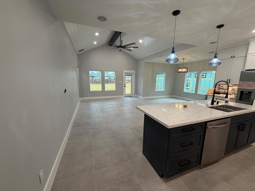 Property Description: Welcome to 741 South 10th Street in South Aransas Pass, a beautifully appointed 1,590-square-foot, three-bedroom, two-bath home that seamlessly blends modern coastal style with thoughtful upgrades throughout. The open concept living area boasts vaulted ceilings with striking beam details, abundant natural light, and durable tile flooring throughout, creating a bright and inviting space for everyday living. The kitchen is both stylish and functional, featuring custom cabinetry, a contrasting navy island, stone countertops, a designer mosaic backsplash, and gas appliances, perfect for cooking and entertaining alike. The master suite is a serene retreat, complete with a walk-in shower, spacious walk-in closet, and elegant finishes that enhance comfort and privacy. Additional upgrades throughout the home include spray insulation for energy efficiency, a tankless water heater for on-demand hot water, Bluetooth-enabled features, and a security system with cameras for added peace of mind. Outside, the home features a welcoming front entry, with plans to add sod and a fenced yard, combining beauty and functionality. Move-in ready and thoughtfully designed, this home is ideally located near schools, shopping, dining, and coastal attractions, making it perfect as a primary residence, vacation retreat, or investment property.