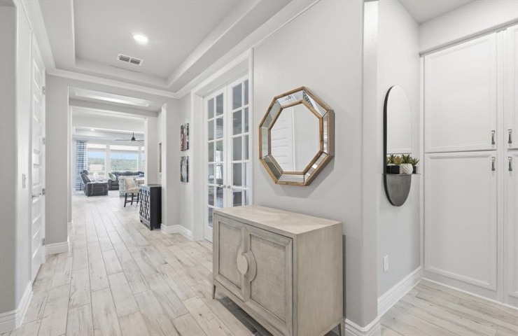 Property Description: Welcome Home! Better than new! This beautiful, light-and-bright Fresco floorplan was completed in 2025, with tile floors throughout. Two bedrooms. 2.5 baths and den with French doors; Full 2-car garage PLUS golf cart garage. Entertaining is a breeze in the open-concept living room, just steps to the expanded (13 x 24 covered, with retractable screens) 24 x 24 back patio. The spacious living room has been expanded with a 4-foot extension and features an electric fireplace with stone surround, built-in cabinets and shelving, tray ceiling and ceiling fan. Home chefs will appreciate a well-appointed kitchen with GE Profile 5-burner gas cooktop, convection oven, quartz countertops, soft-close drawers, pullouts and convenient pantry. The dedicated dining room adds to an open feeling, while providing space for elegant evenings or game nights. The Primary bedroom suite is appointed with a tray ceiling, crown molding, ceiling fan, generous (7.5 x 10) walk-in closet, and lovely ensuite bath with curbless shower. The second bedroom has its own ensuite bath, for privacy. You need to see this beautiful home in person to appreciate all the special touches! Robson Ranch is a 55+ Active Adult Community with Golf, Tennis, two Swimming Pools, Fitness Center & much more. There is something for everyone ! It's time to start your next adventure! * All information is deemed reliable but is not guaranteed and should be independently verified *