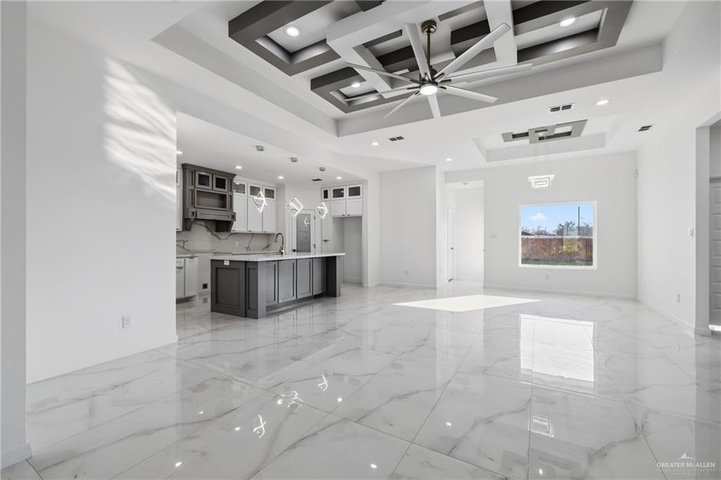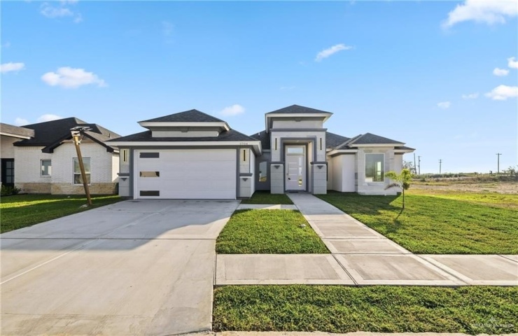 Property Description: QUALITY AT ITS FINEST! Beautiful new construction 3-bedroom, 2-bath home located in the new La Paloma subdivision in San Juan, TX. This home features an elegant stucco exterior with cantera and imitation cantera accents, 24x48 porcelain tile flooring, and modern LED fixtures throughout.The kitchen showcases vein-matched quartz countertops seamlessly integrated into the backsplash, while the living area is enhanced by a custom entertainment accent wall. The primary bath includes a double vanity with LED anti-fog mirror. Additional highlights include foam insulation and a convenient drive-through garage. Owner finance available with our private lender with 10%-20% down.