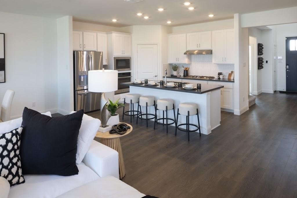 Property Description: What's special: Oversized Pantry - Two Bedrooms Down - No Rear Neighbors - Best Seller - Premium Location - North Facing Lot. New Construction - Ready Now! Built by Taylor Morrison, America's Most Trusted Home Builder. Welcome to the Lavaca at 1451 Arciones Road in Madero. This beautiful new home greets you with a welcoming foyer that opens into the kitchen, great room, and dining area, perfect for gathering and entertaining. The kitchen features a large island with quartz countertops and premium appliances including a 5-burner cooktop, built-in oven, and microwave. RevWood flooring flows throughout the main living spaces, adding warmth and style. Enjoy the quiet covered patio, creating an ideal space for indoor-outdoor living. The main-level primary suite is tucked off the great room with backyard views and includes a spa-inspired en-suite bath and spacious walk-in closet. A secondary bedroom and full bath are located off the foyer, while upstairs you’ll find a game room overlooking the entry and three additional bedrooms with a full bath. This community provides an open, uncrowded feel with expansive green spaces and thoughtful home placement. Planned amenities include open-air centers, sports courts, a resort-style pool, lush walking trails, and neighborhood retail. Plus, with no MUD or PID taxes, you’ll have even more freedom to explore Fort Worth’s museums, theaters, music venues, and more. Additional Highlights Include: GE top load washer and dryer, GE energy star refrigerator, covered patio, and whole house blinds. Photos are for representative purposes only. MLS#21154069