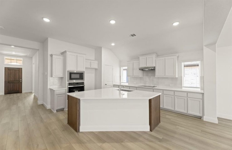 Property Description: MLS# 21154460 - Built by Pacesetter Homes - Ready Now! ~ Welcome home to 1404 Elle Lane, a beautifully designed 3-bedroom, 2-bath home that combines modern features with everyday functionality. The open-concept layout includes a private study, perfect for remote work or a quiet retreat. The deluxe kitchen boasts quartz countertops, stainless steel appliances, 36 upper cabinets, pot and pan drawers, a pull-out trash drawer, and a convenient pop-up outlet at the island. Brushed nickel light fixtures and LED disk lights in the family room add a sleek, contemporary touch. The master suite features a spacious shower with a built-in seat and a charming box window in the bath, complemented by polar white engineered marble countertops. Full gutters surround the home for added protection and curb appeal.Your Pacesetter Home comes equipped with a suite of smart features designed to enhance everyday living.-Ring Video Doorbell-Honeywell Smart T6 Thermostat for energy savings-WiFi-enabled Garage Door-Rainbird Wifi-capable Sprinkler System