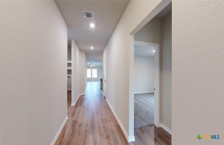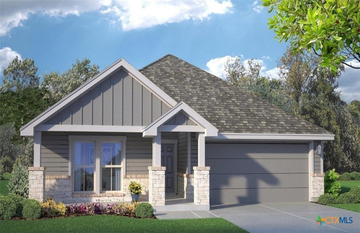 Property Description: Come check out the Monroe floorplan in Killeen, Texas at Turnbo Ranch Traditions. This incredible single-story 1,951 approximate sq. ft., 2-car garage is perfect for you. The four-bedroom and 2.5-bathroom layout, comfortably accommodates friends, family, and guest. When you enter the home, you'll be greeted with two bedrooms and a secondary bathroom and another secondary bedroom next to the car garage. Continuing down the hallway, find yourself in the open concept living area that blends the kitchen, great room, and dining area. The kitchen features flat panel birch cabinets and granite countertops, with decorative tile backsplash. It is set off from the lining areas by a kitchen island with a built-in sink. From the dining room are you have easy access to the covered patio. Walking through the great room, you'll find the primary bedroom with an attached bathroom. The bathroom has a double vanity and a walk-in shower that can be opted for a tub and shower, and a large walk-in closet for all your belongings. Like with all our homes, you'll never be too far from home with our smart home technology thoughtfully designed into every detail. Contact us today to find your home in Turnbo Ranch Traditions.