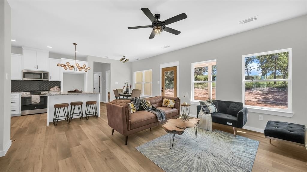Property Description: Experience serene country living in this proposed Lucas plan new construction home in Poolville, free from city taxes and HOA fees. The open concept design offers a spacious yet cozy floor plan with a large kitchen island and custom painted cabinets. Featuring 3 bedrooms, 2 bathrooms, and a 2-car garage on 2-acres, this home provides ample space for comfort. Take advantage of NO PAYMENTS while you build with Zeal Home Builders! The master suite includes double sinks and a walk-in closet conveniently connected to the laundry room. While quaint in size, this Lucas plan lacks no features a custom home deserves including split bedrooms, large porches, custom cabinetry & closets, Delta faucets, concrete drive, decorative mirrors, wall mounted TV outlets & hardline ethernet ports, SPRAY FOAM insulated walls & more. Builder spares no expense on your 2-car garage fully finished with can lighting & smart MyQ side mount garage motor & auto-lock for extra safety. Home will come with a 3-phase inspected & a comes with 1-2-10 3rd Party Warranty for your peace of mind. Find yourself surrounded by privacy and seclusion from the city while still only minutes to creature comforts. Estimated completion 5-6 months from start to finish. With a wide range of options at your disposal, you can tailor it to suit your unique needs. Photos & floor plan are of previous builds & subject to change. Located just 25 minutes from Weatherford & under an hour from downtown FTW. Txt keyword ZHBHOME5 to 88000 for Virtual Tour & more!