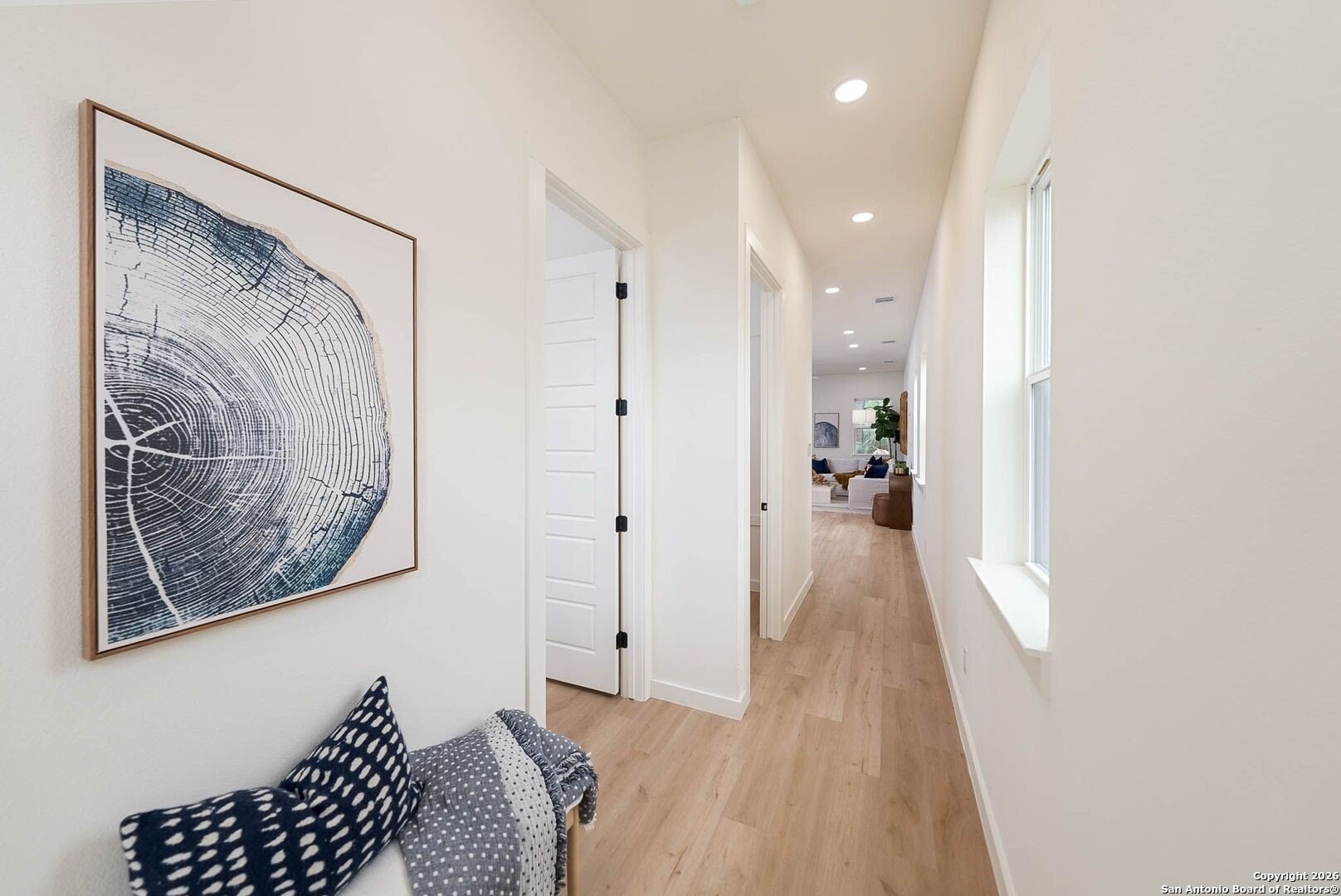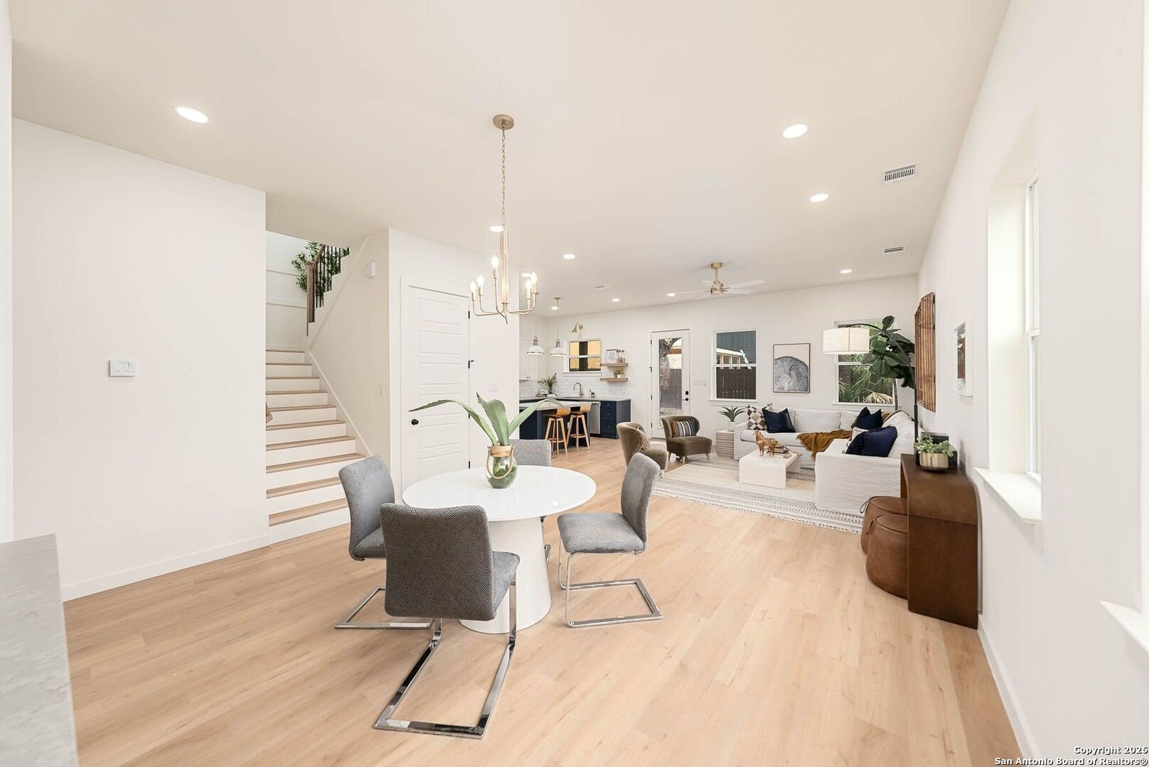 Property Description: This brand-new two-story home offers modern design and everyday functionality in a prime central San Antonio location, directly across from Woodlawn Park. The open layout is filled with natural light and enhanced by high ceilings, wide-plank luxury vinyl flooring, and oversized doors that create a clean, contemporary feel. The main level includes a versatile office or flex space, along with a well-designed kitchen featuring custom cabinetry, quartz countertops, stainless steel appliances, and a large island ideal for gathering and entertaining. A wet bar near the dining area adds an elevated touch for hosting. Upstairs, all bedrooms are thoughtfully placed and include ceiling fans, with the primary suite offering a spacious walk-in closet and a modern en-suite bathroom with dual vanities and a walk-in shower. The home also includes a functional laundry room with built-in cabinetry and a folding station, a convenient drop zone off the garage, an EV charging outlet, and plumbing ready for a water softener. Front-yard sprinklers add ease of maintenance, while the location provides quick access to major highways, downtown, and nearby parks-making this a move-in-ready opportunity in a growing and desirable neighborhood.