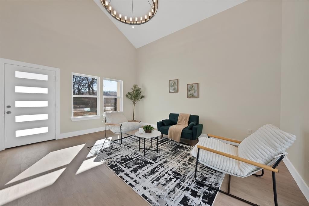 Property Description: Stunning two-story home offering 4 bedrooms and 2.5 bathrooms with a thoughtfully designed layout and modern finishes throughout. The main living area features soaring ceilings highlighted by a statement chandelier, creating a striking and welcoming focal point.