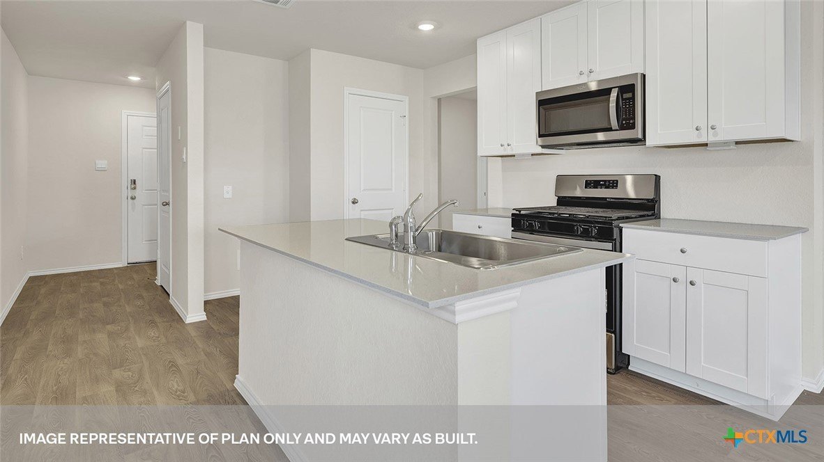Property Description: FEBRUARY ESTIMATED COMPLETION. The Atlanta is one of our one-story floorplans featured in our Sunset Oaks community in Maxwell, Texas. This 1,156 square foot home includes 3 bedrooms, 2 bathrooms and a 2-car garage. Our homes in Sunset Oaks feature our modern farmhouse exterior. Step inside the Atlanta and enter the heart of the home, the open concept living space. The kitchen, dining and living room are intentionally designed for everyday living and entertaining. The kitchen features an island with a stainless-steel sink, quartz countertops, 42' upper 'picture frame' cabinets, a pantry closet, and stainless-steel appliances, including a gas range. The secondary bedrooms are located off the kitchen, as well as a secondary bathroom and utility room. The bedrooms include carpet and closets with wood shelving. The secondary bathroom has a shower/tub combination and a cultured marble vanity with trench sink. The primary bedroom is tucked away at the back of the home and includes an attached bathroom. Stretch out at the end of the day in this owner's retreat, which includes a walk-in shower, cultured marble vanity with trench sink and a large walk-in closet. This home features our America's Smart Home base package, which includes the Video Front Doorbell, Front Door Deadbolt Lock, Home Hub, Thermostat, and Deako(R) Smart Switches.